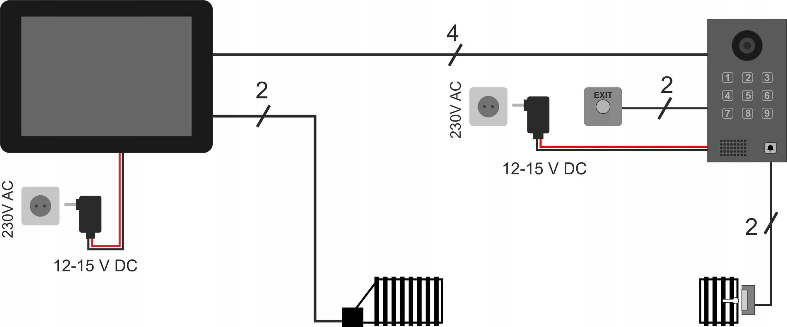 - Подключение 4 Вес блокировку и внешнюю станцию. Монитор