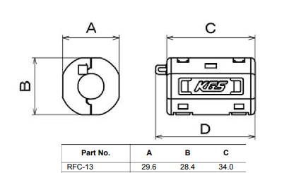 ВІДКРИТТЯ ФІЛЬТРА ФЕРИТОВИЙ ЗАЖИМ 29,6 x 28,4 x 34 м