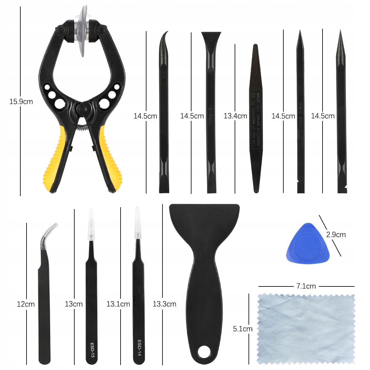 Необходимый набор, предназначенный для работ, связанных с заменой дисплеев, вскрытием корпусов устройств, таких как iPhone, Samsung, Sony, Huawei и т.д., планшетов, навигаторов, ноутбуков. и многие другие.