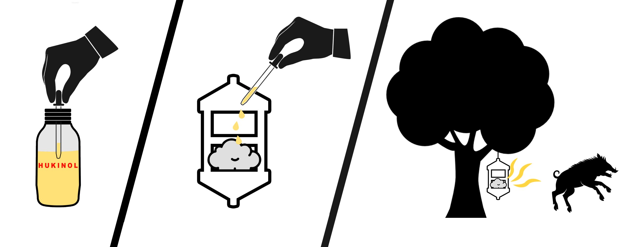 Хукинол позволяет защитить (например, чердаки, чердаки, гаражи, недвижимость или сельскохозяйственные угодья) от нежелательного присутствия диких животных. Препарат для кабанов и других диких животных предназначен для профессионального использования.