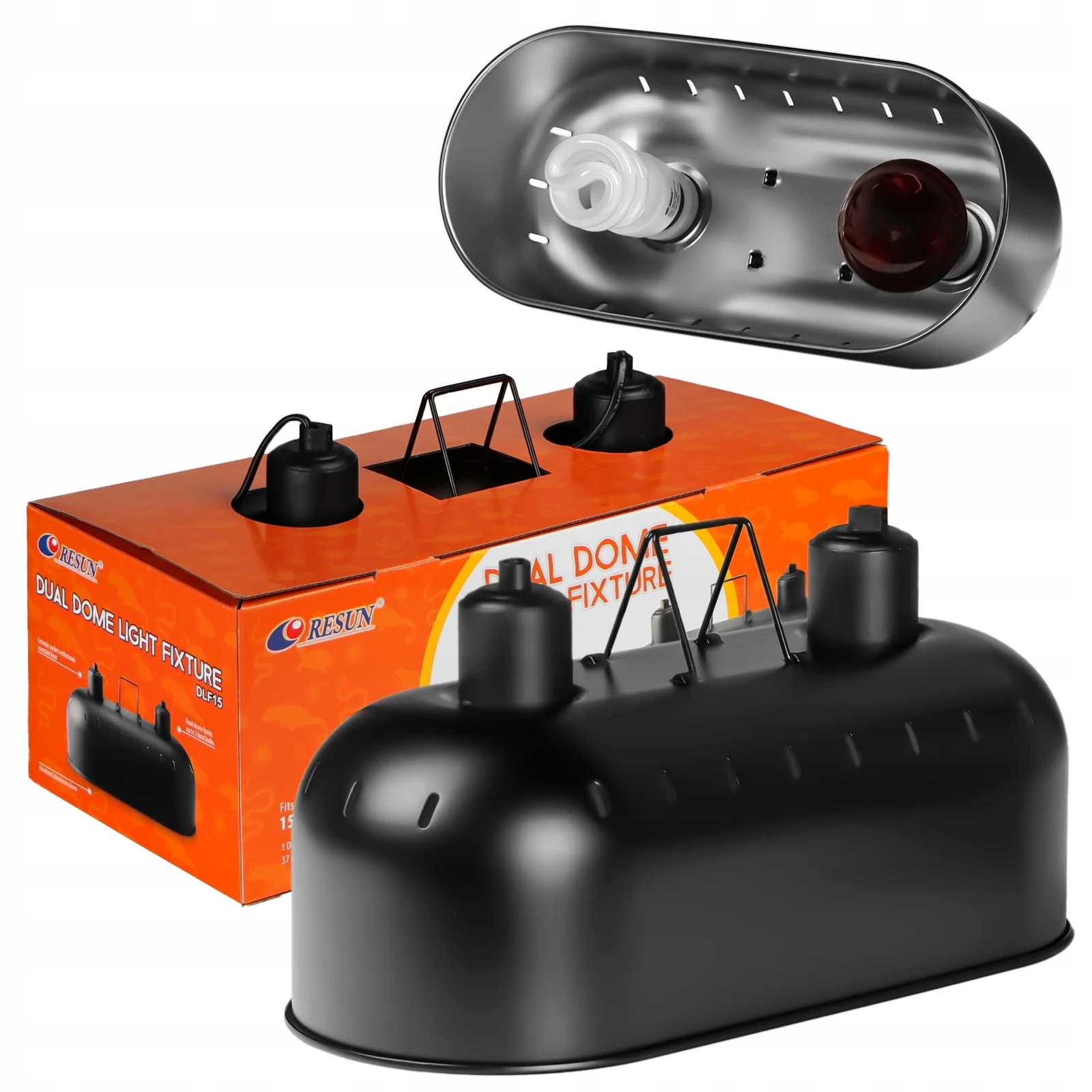 Двойная лампа для луковицы, тепловой эмиттер или лампочки UVB до террариума - террариум. Оборудован отражателем, двумя керамическими рамами, абажуром, вешалкой и двумя кабелями с выключателем. Это создает правильные условия, и, что наиболее важно, подходит для терраристических луковиц, благодаря толстой керамической раме. Вы можете использовать для любой нагревательной лампы или UVB, мощность которого не превышает 150 Вт каждая (2 x 150 Вт)