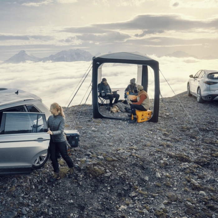 Надувный, свободный вестибюль, который вы можете адаптироваться к своим потребностям. Технология воздушной рамки с одноцелевой функцией инфляции и быстрыми высокими поясами, чтобы гарантировать, что в мгновение ока вы распределите все оборудование и начнете наслаждаться свежим воздухом.