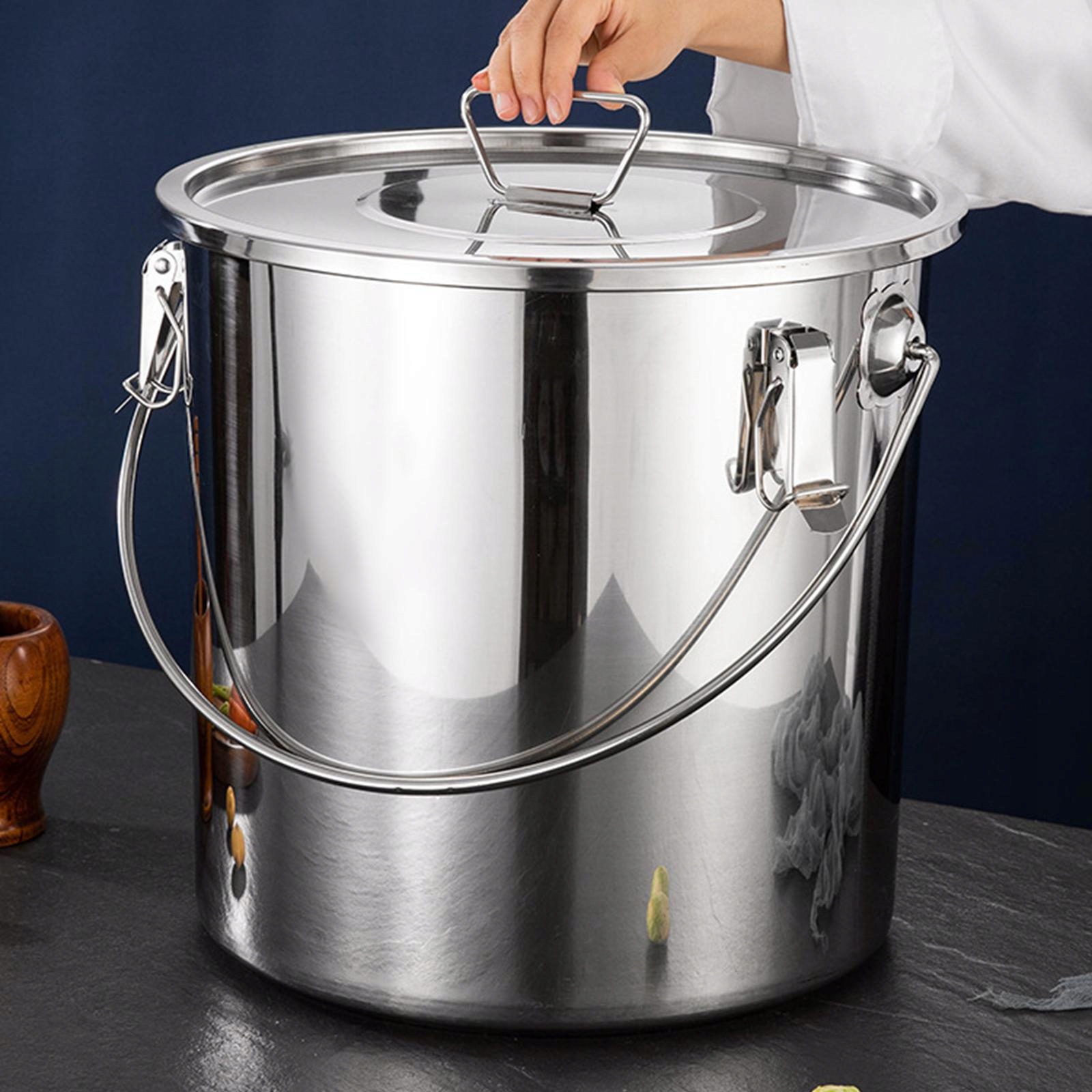 [Тип]: Коммерческая суповая кастрюля из нержавеющей стали с крышкой. Также может быть ведро для риса, емкость для хранения сухих продуктов, ведро для воды с жидким маслом.