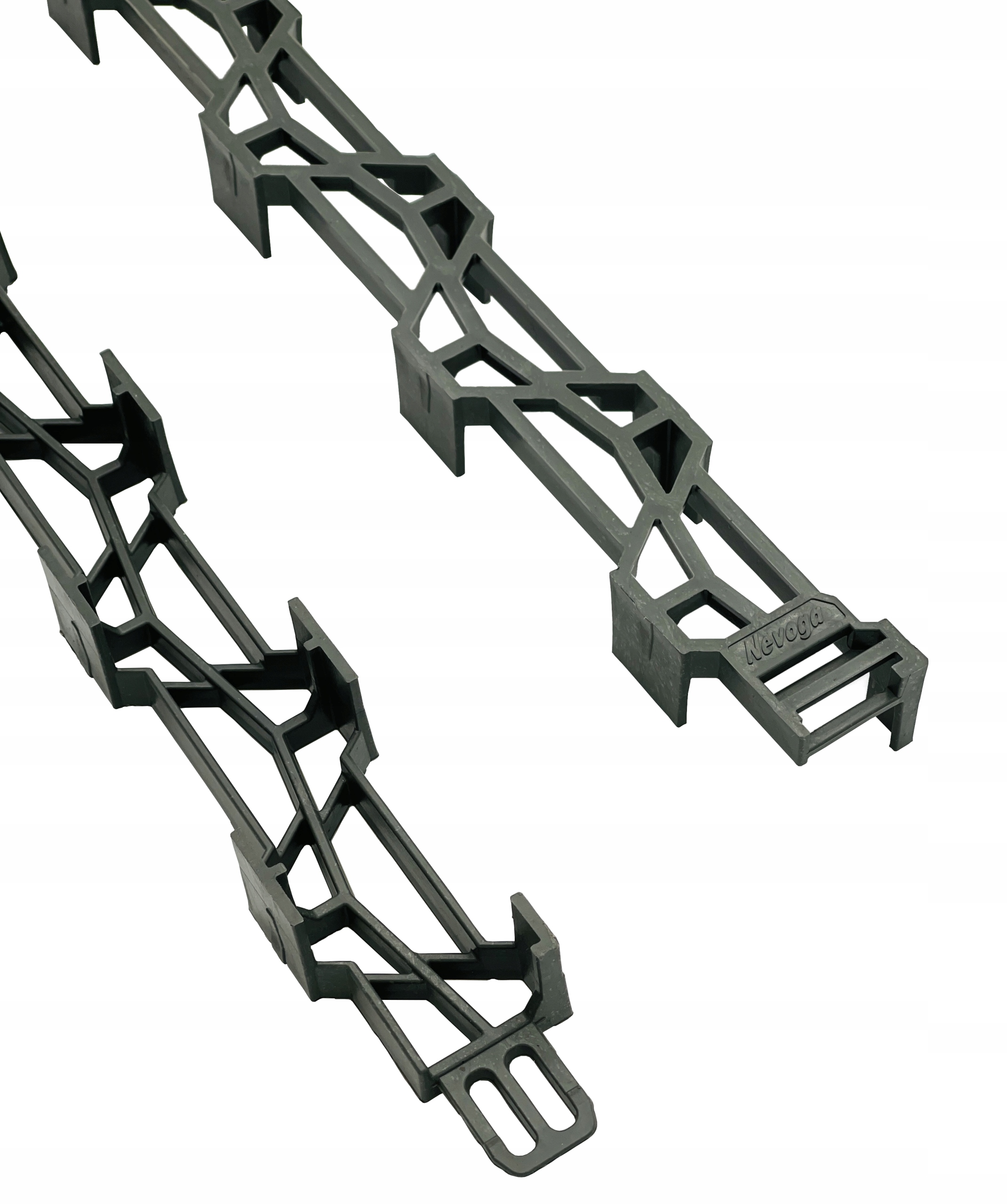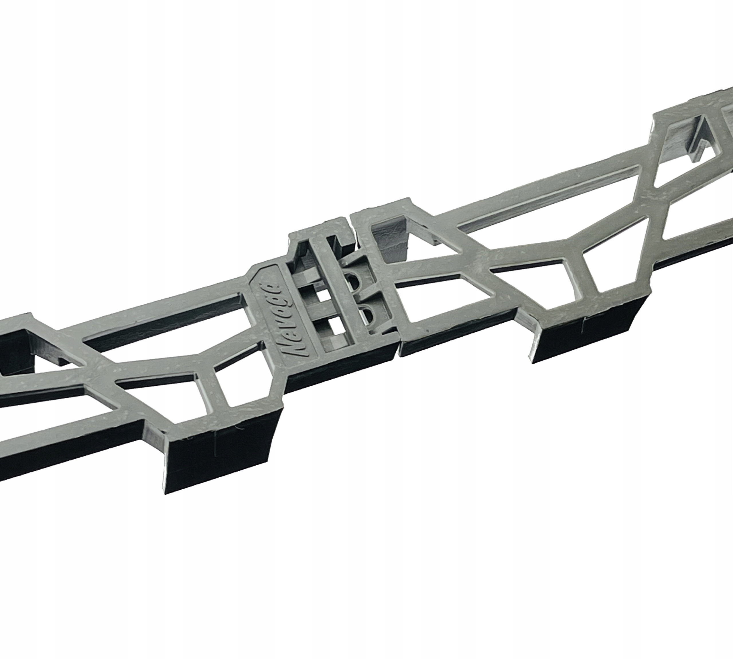 Полоска имеет чередующиеся ножки, что гарантирует стабильность при установке и высокую устойчивость к нагрузкам. Благодаря многочисленным вырезам в полосе бетон проникает под арматуру, создавая прочное покрытие. Использование проставок облегчает укладку последующих слоев арматуры и обеспечивает монолитность конструкции после бетонирования.