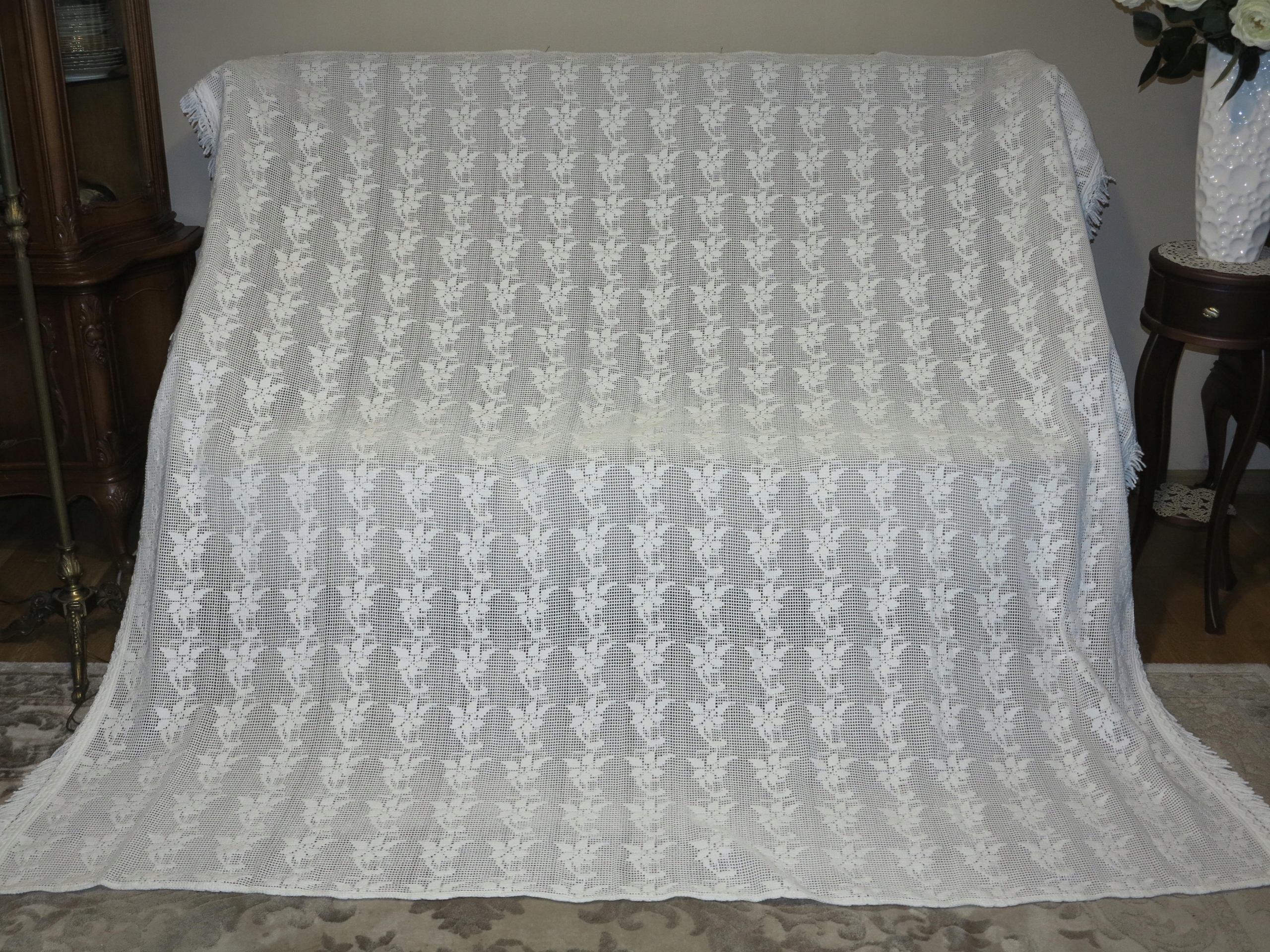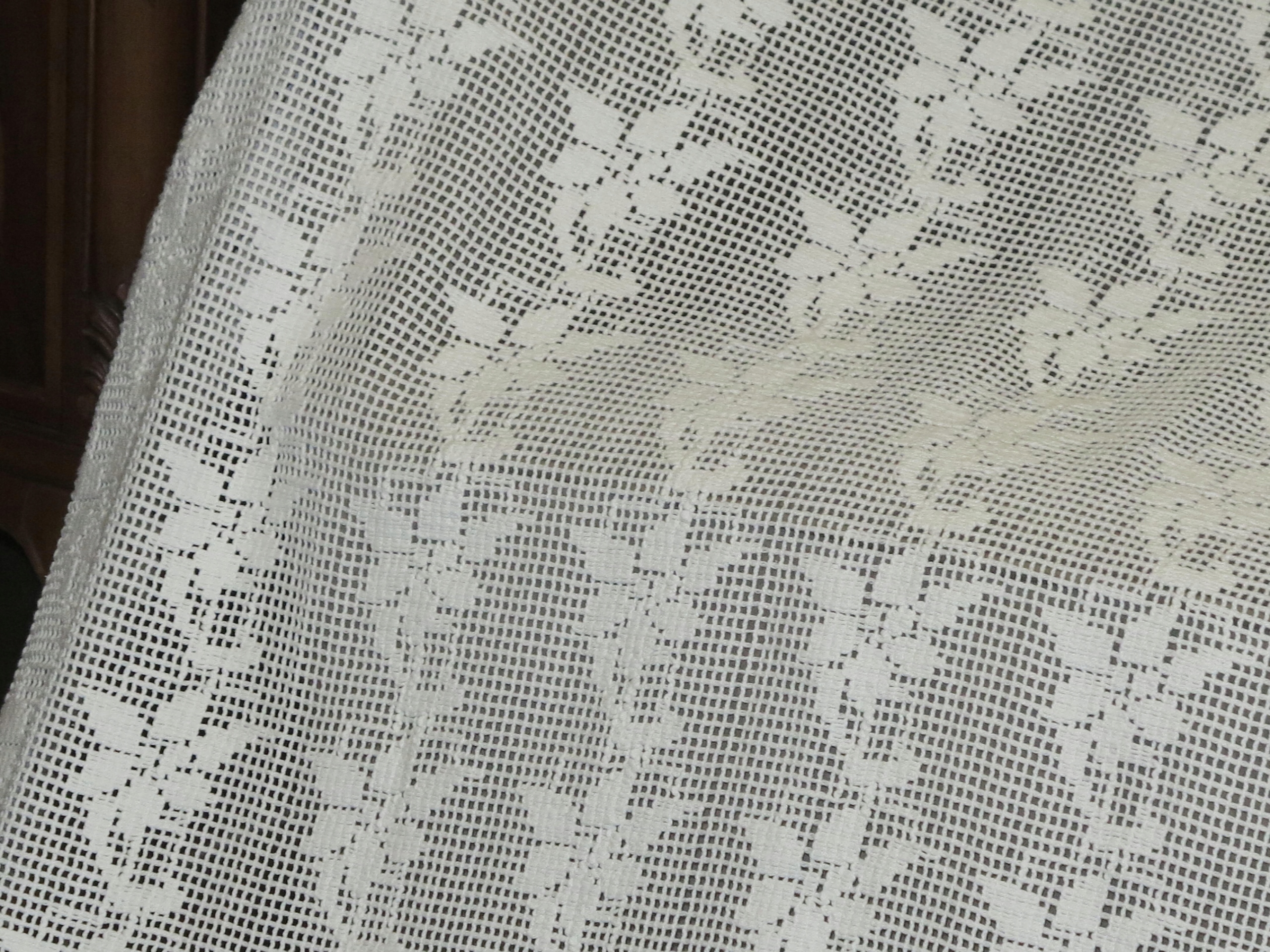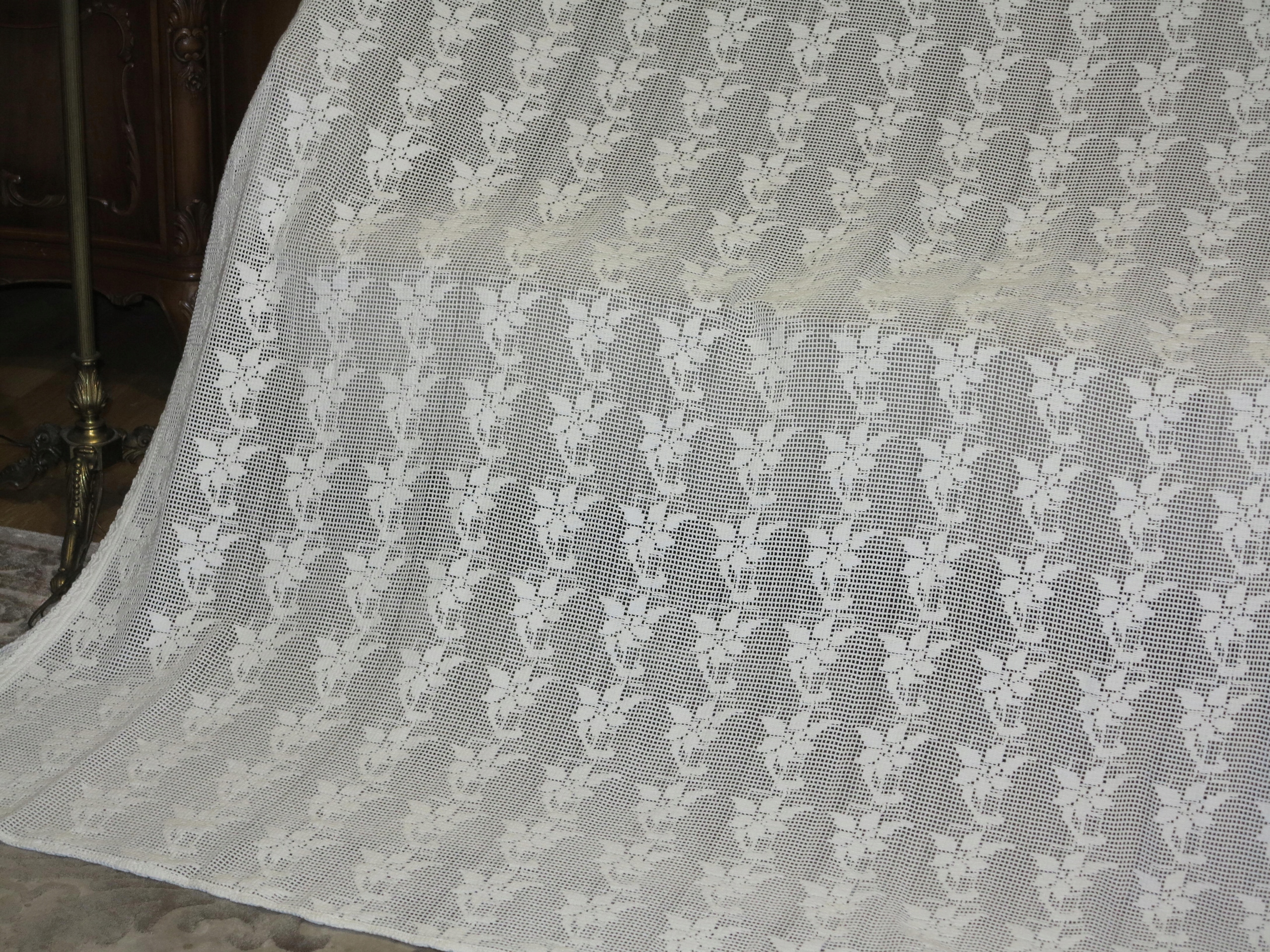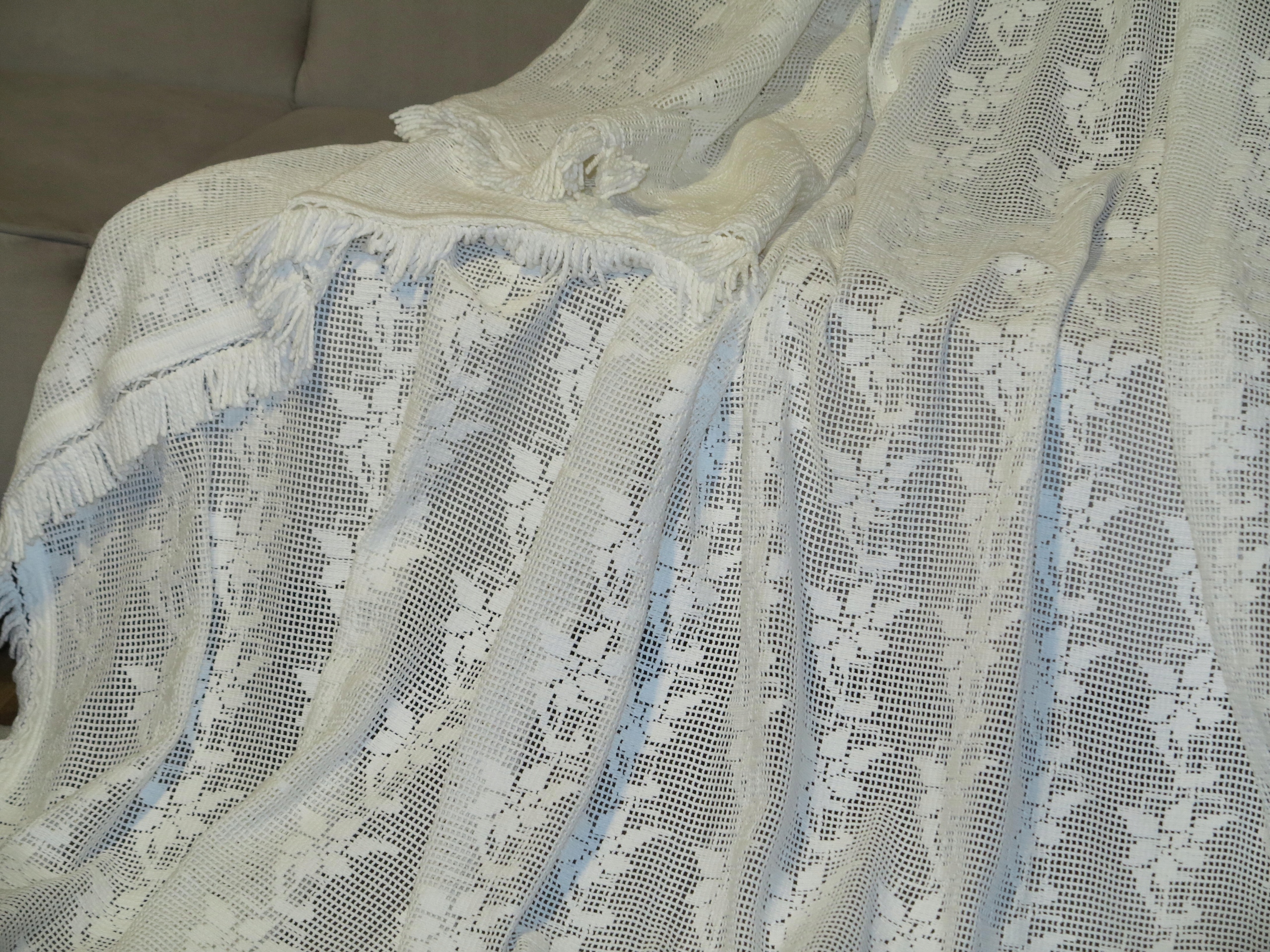 Сделано в Португалии-красивое крупное покрывало от хлопкового кружева с рисунком стержней. С двух сторон, хабердашерия с полосами. Цвет чистого крема белого