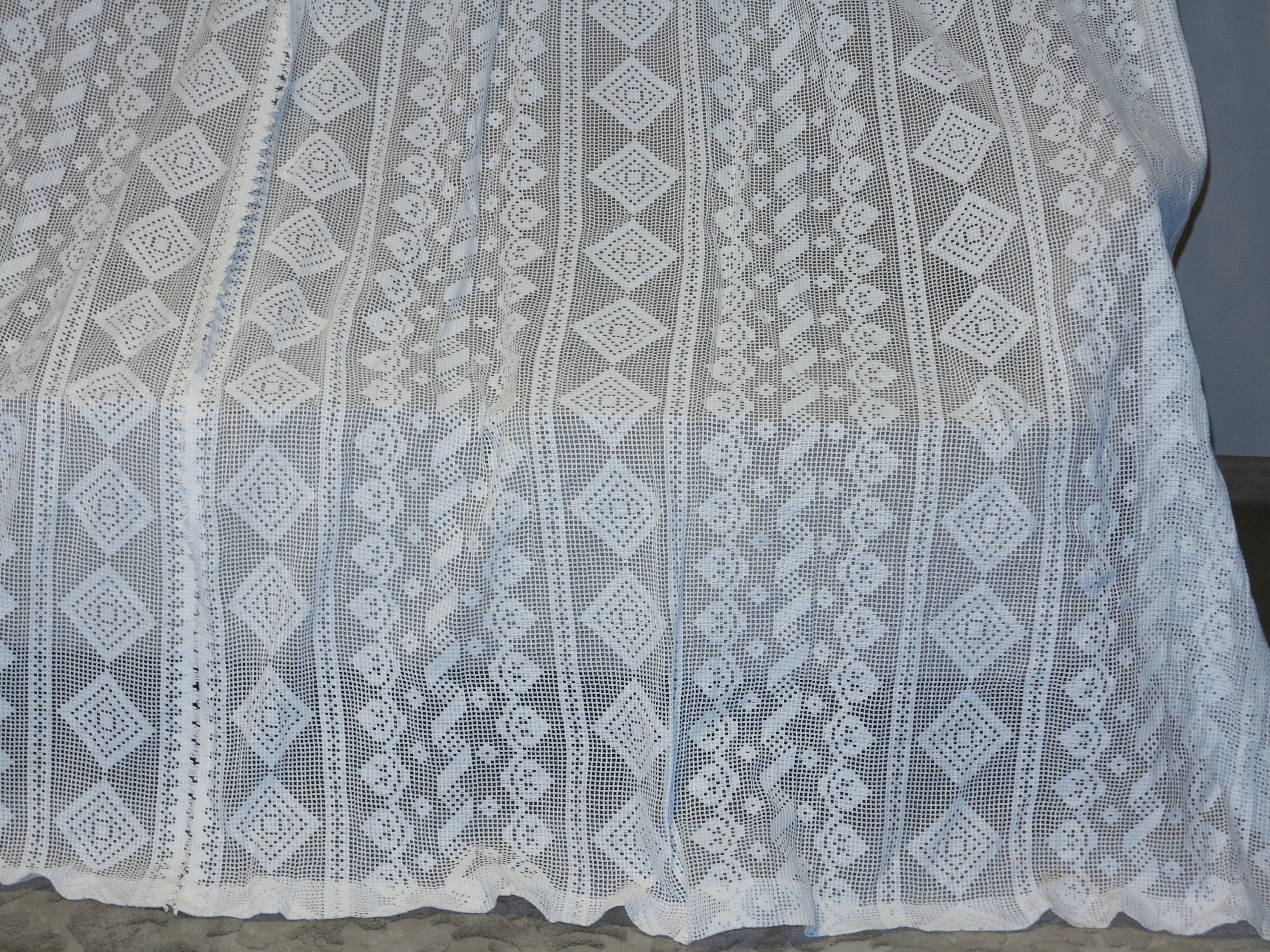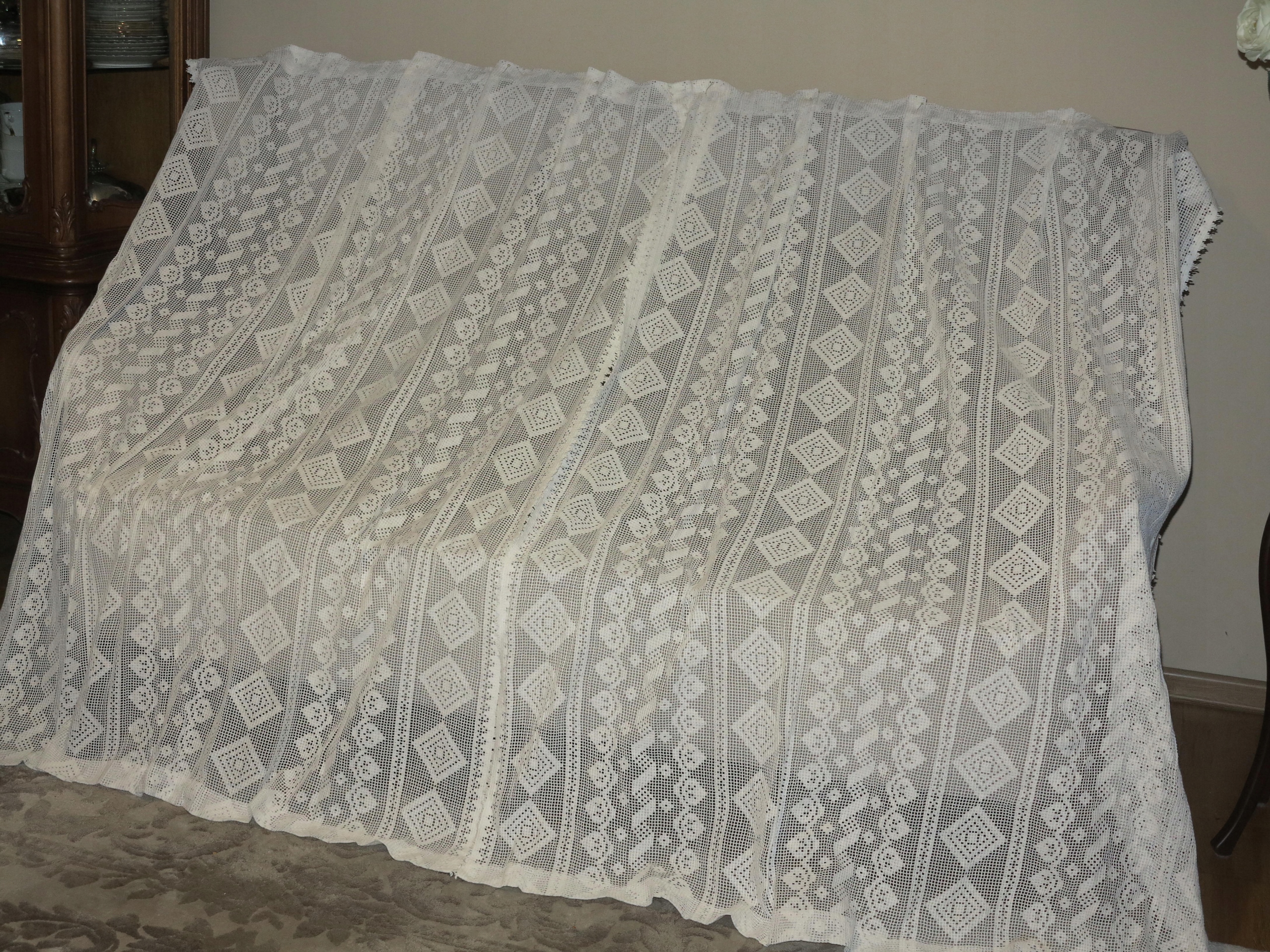 Предмет аукциона - прекрасная, португальская кружевная занавеска или шторы, состоящие из двух половинок, в стильном древнем рисунке. В чистом кремовом белом. Используемый набор, в супер хорошем состоянии. Я рекомендую