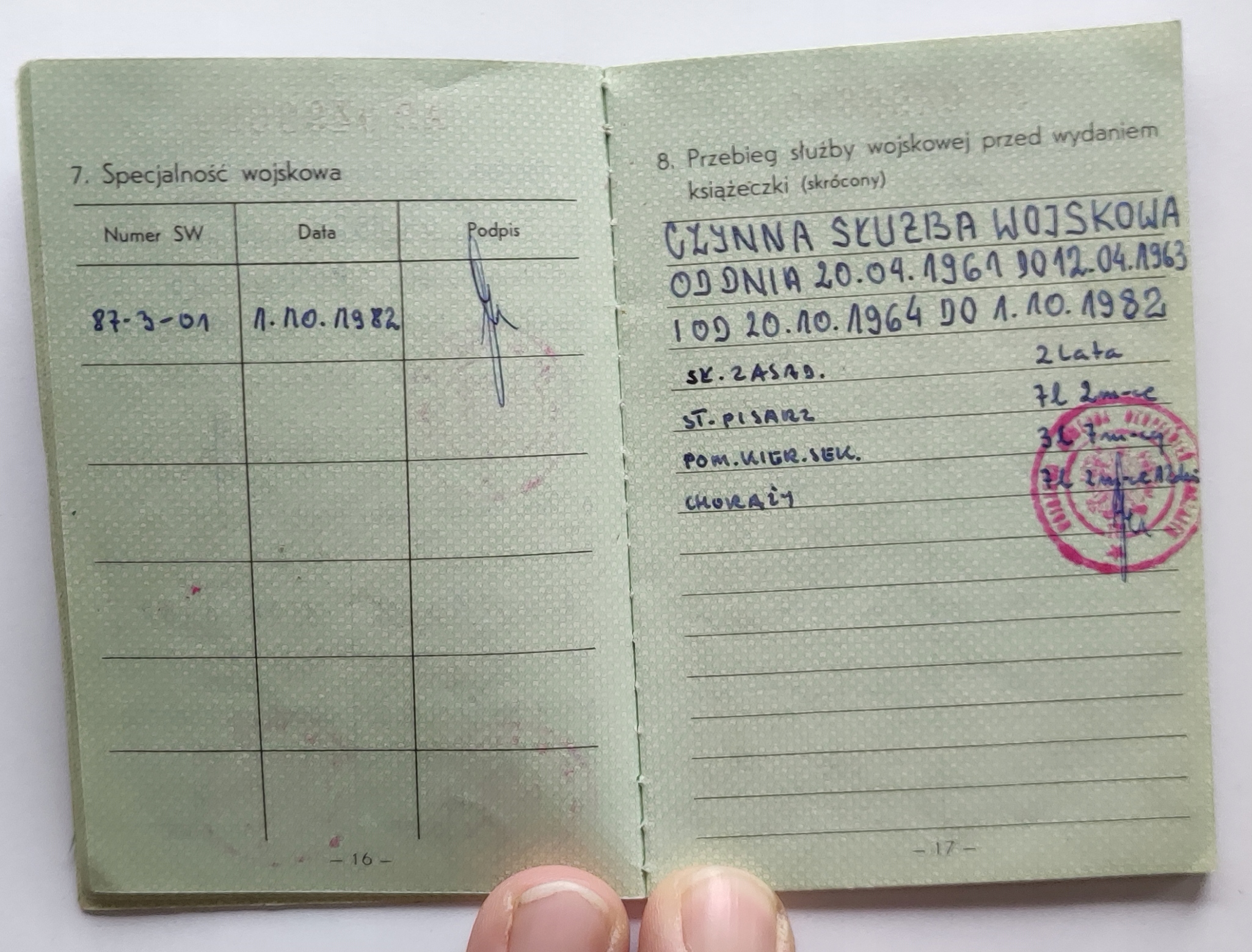 Военная книжка ЛВП Польской Народной Армии ПРЛ 1982 г. Р.П.