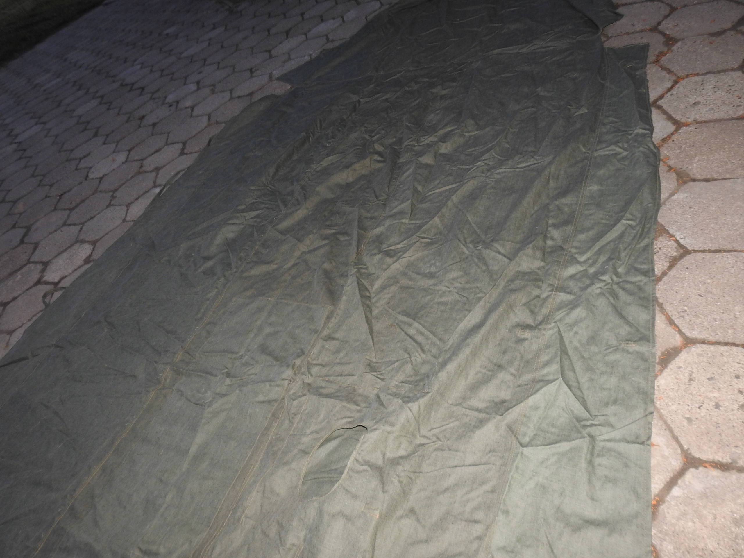Брезент не использовался, материал цел. В некоторых местах они имеют незначительные изменения цвета из-за длительного хранения (40-50 лет),