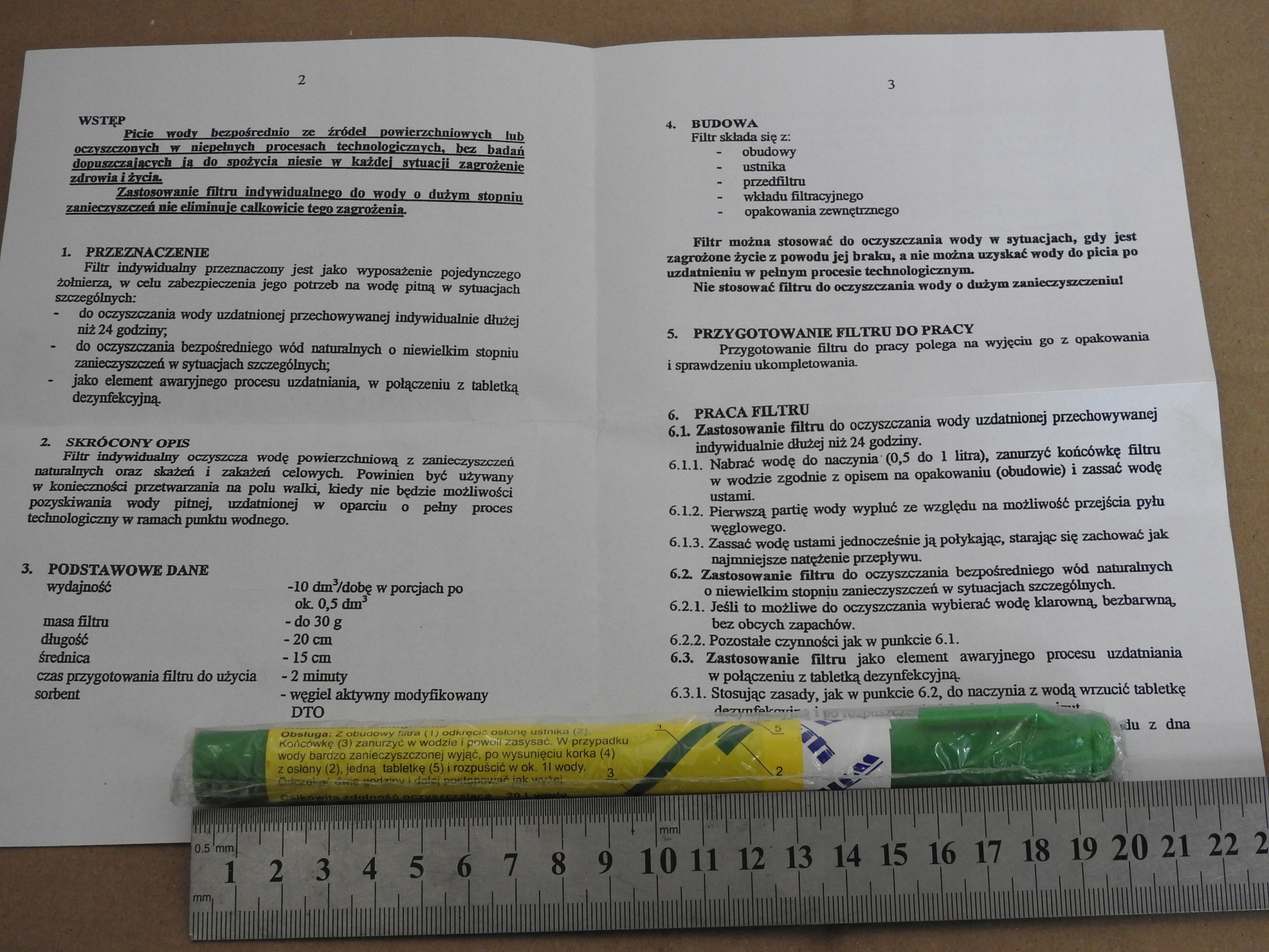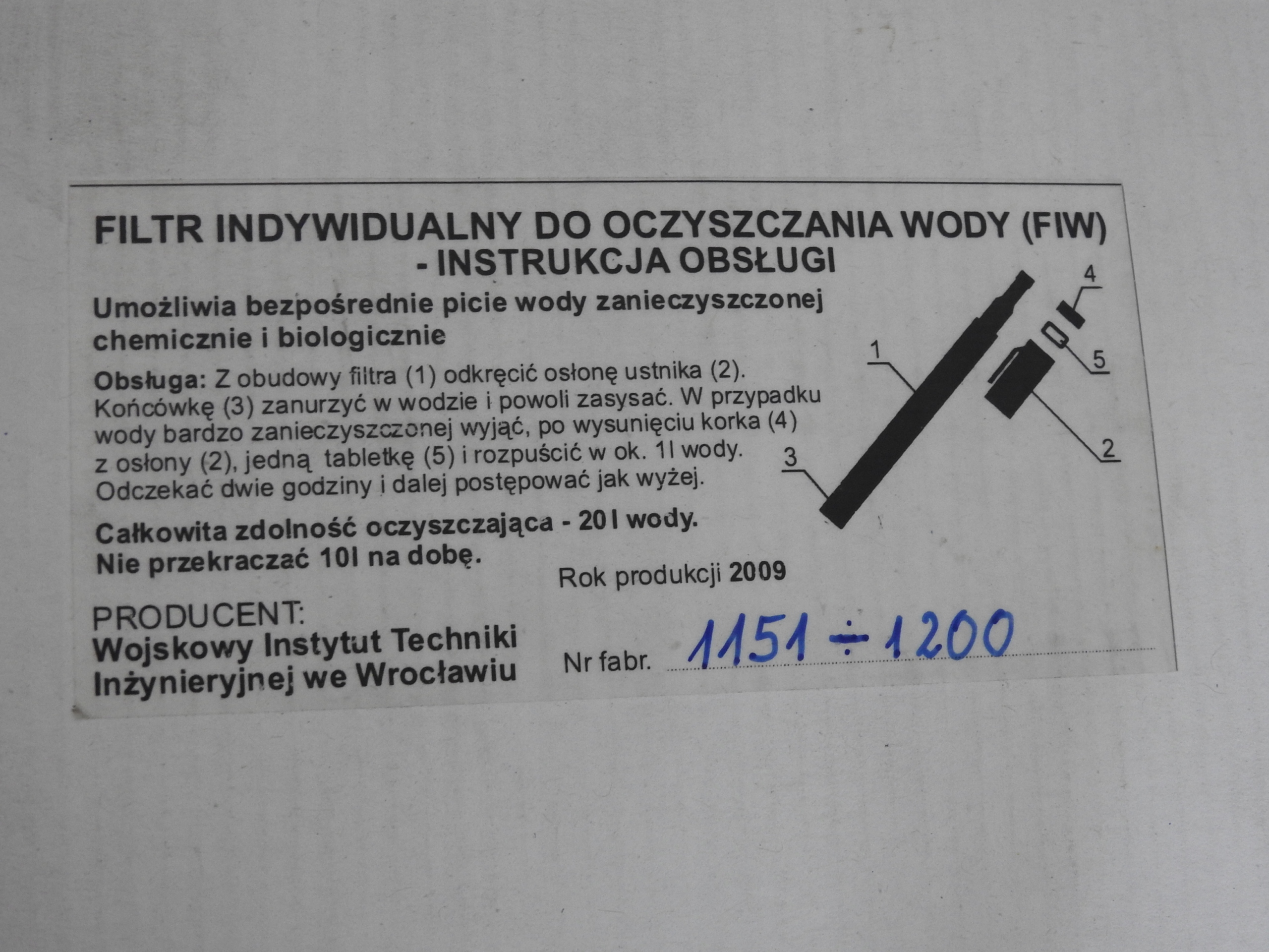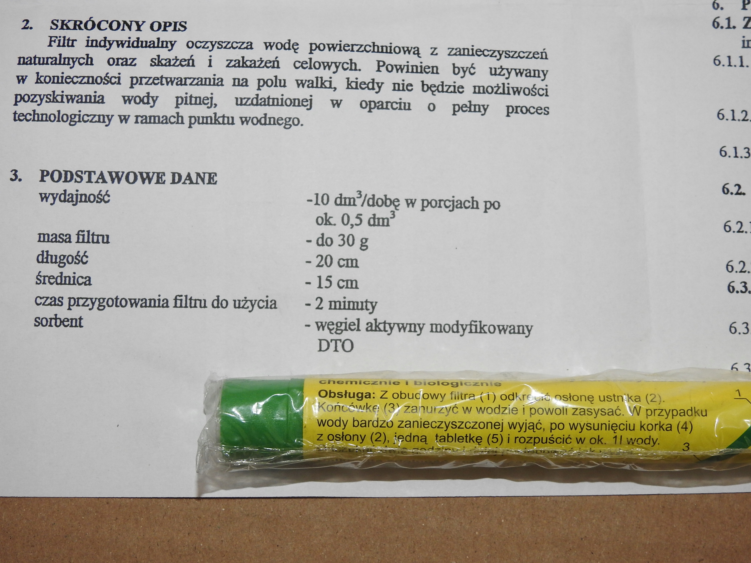 Индивидуальный фильтр предназначен как оборудование одного солдата, чтобы обеспечить его потребности в питьевой воде в особых ситуациях. Инжиниринг в Вроцлаве.
