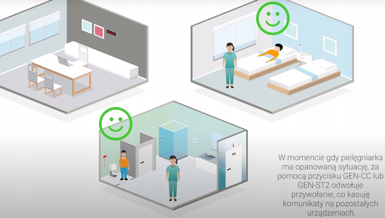 Кнопка предназначена для отмены триггерных сообщений. Он используется, среди прочего, в больнице. Его чаще всего ставят рядом с дверью в комнату, где лежат больные. При входе в палату медсестра нажимает кнопку, тем самым аннулируя звонок от позвонившего пациента.