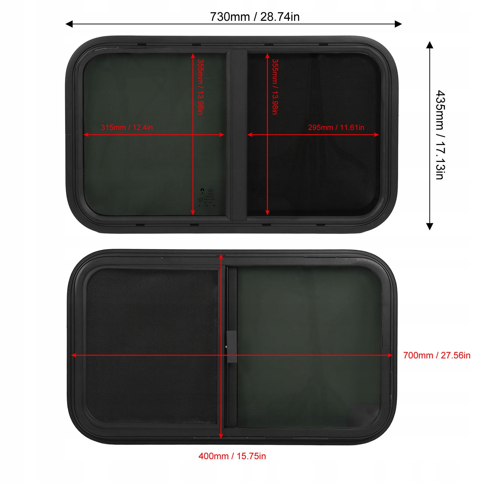 Размер отверстия установки: ок. 700 x 400 мм/27,56 х 15,75 дюйма, можно использовать для вертикальной или горизонтальной установки: тонительное окно защищает вашу конфиденциальность и убедитесь, что правый солнечный свет не нагревает внутреннюю часть RV. Полностью закрытое окно Держите холодный фургон и тепло зимой