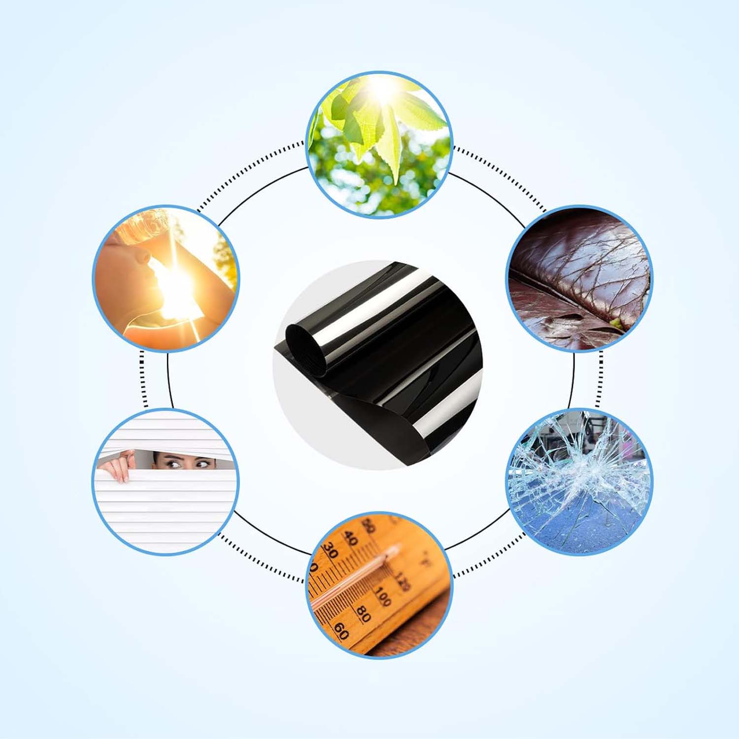 ✅Защита конфиденциальности: Оконная пленка прозрачна внутри и непрозрачна снаружи, обеспечивая достаточную конфиденциальность в течение дня. (Примечание: если свет внутри ярче, чем снаружи, зеркальный эффект будет противоположным, поэтому обратите внимание на защиту вашей конфиденциальности в ночное время.)