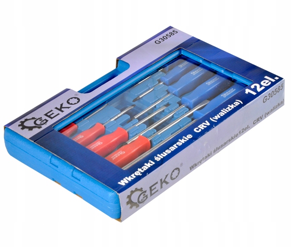 Набор из двенадцати отверток слесаря для избиения Geko, изготовленного из хромированной стали (CRV).