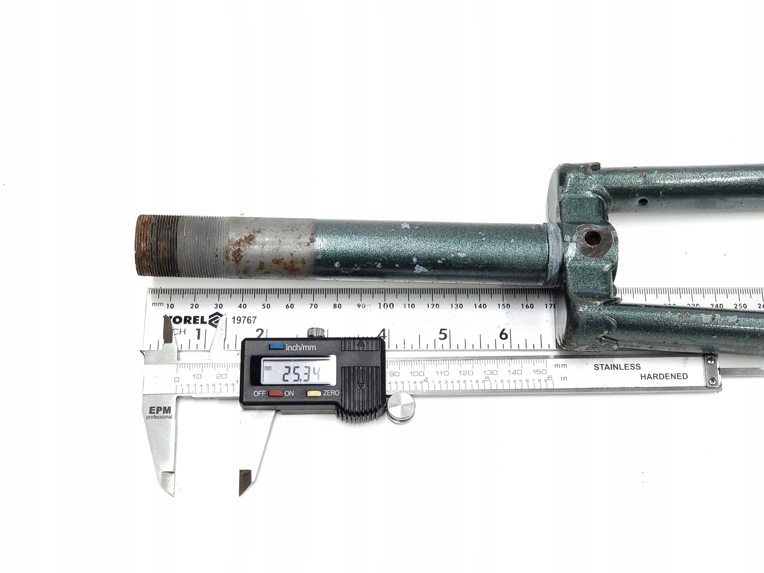 Предлагаем вилку 27 1 1/4 дюйма для велосипедов Eska Sport Чехословакия. Длина рулевой трубы: 17 см. Длина резьбы: 35 мм Диаметр резьбы: 25,34 мм Общая длина: 57,5 см