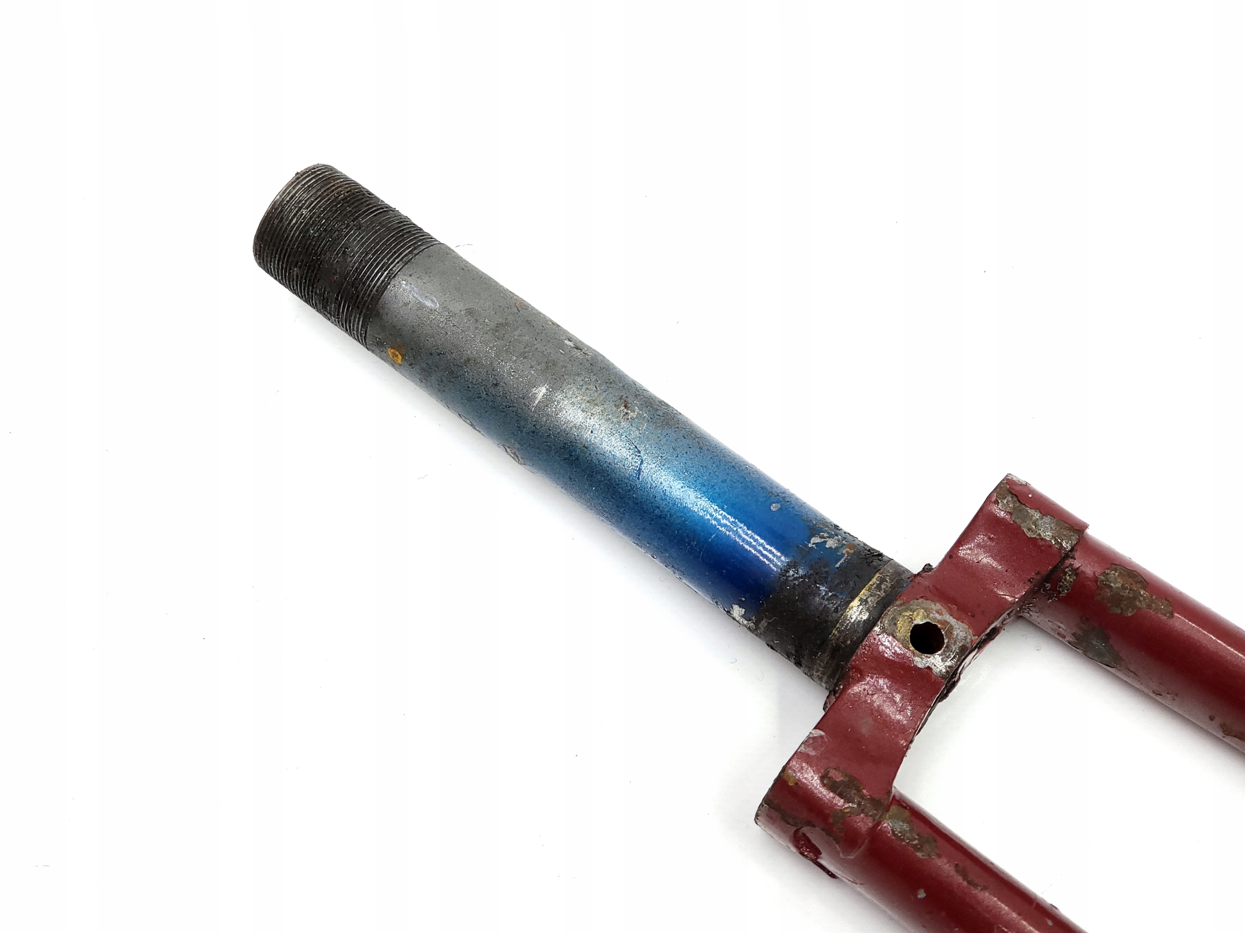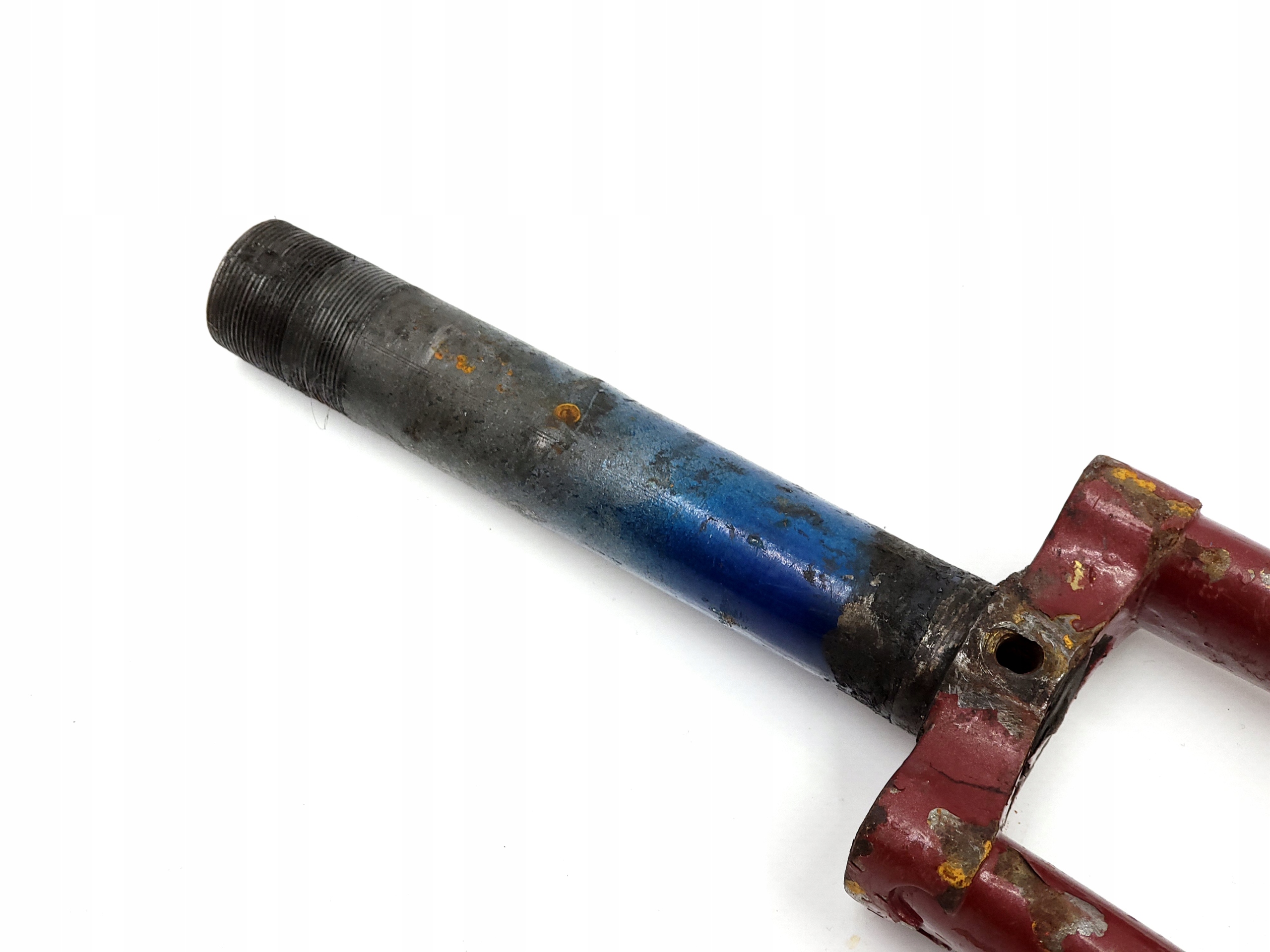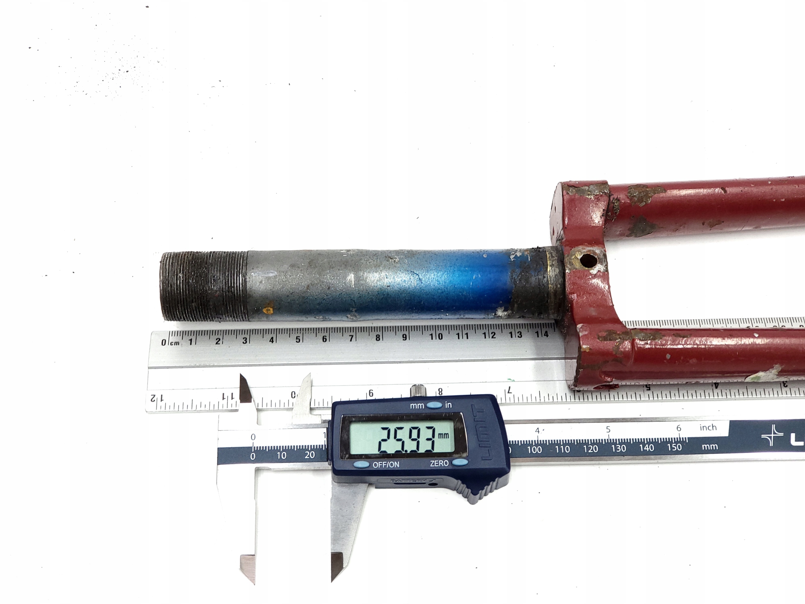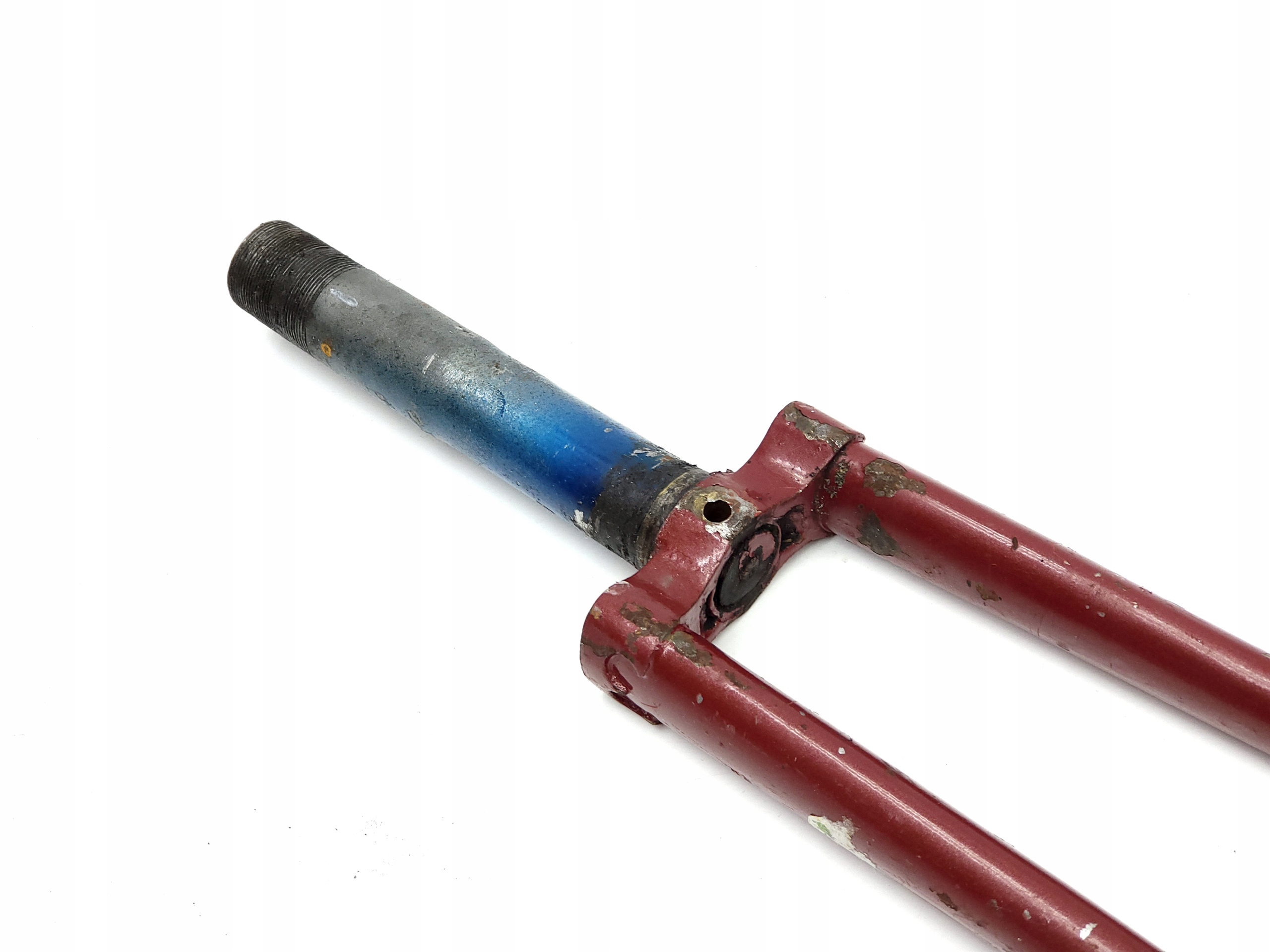 Предлагаем велосипедную вилку ZZR Romet Jaguar Huragan Sport и др. из Польской Народной Республики. ДЕФЕКТ: кривая вилка, для профессиональной выправки. Длина рулевой трубы: 14,5 см. Длина нити: 3 см. Диаметр резьбы: 25,93 мм.