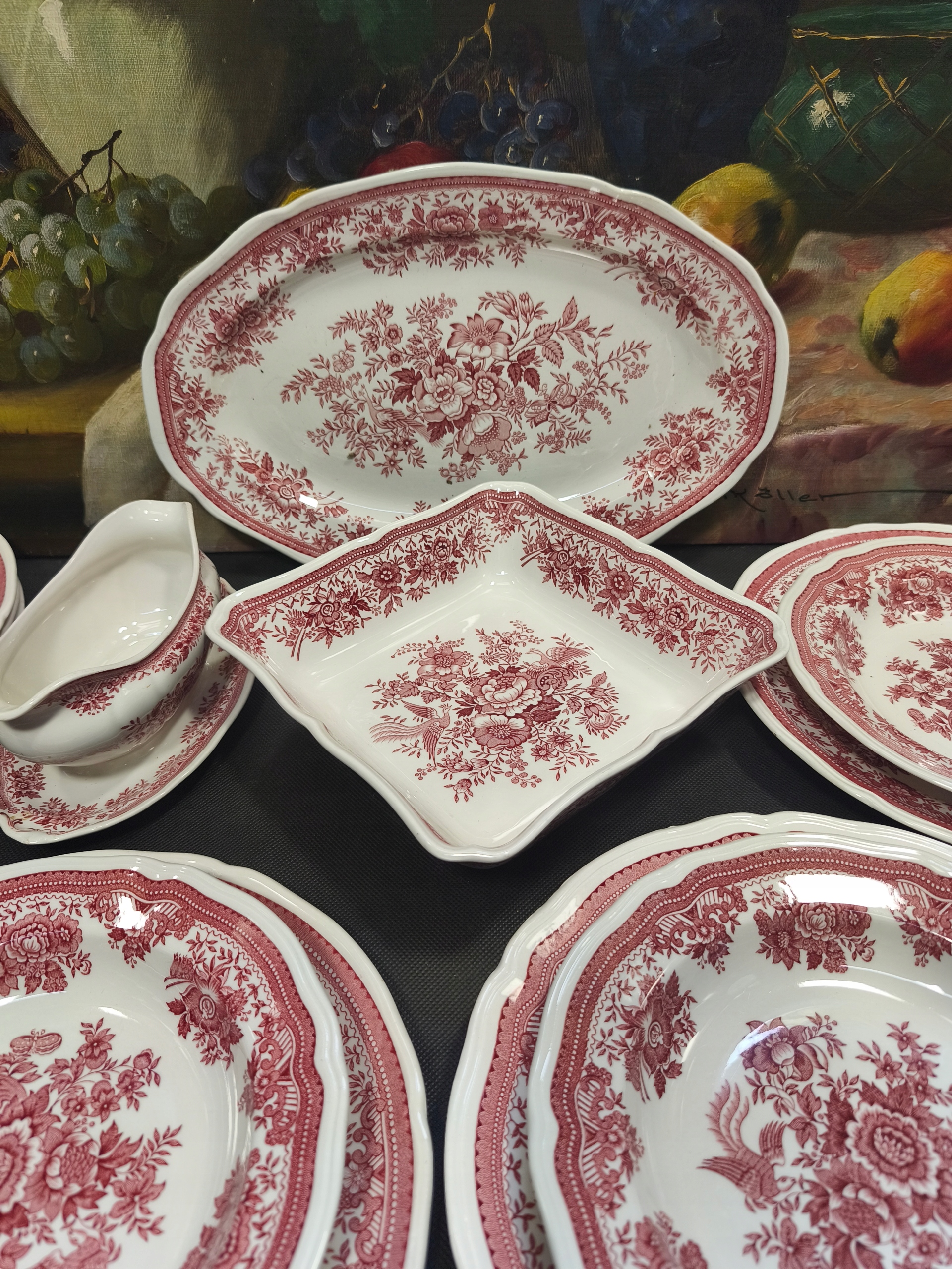 Ужин для 6 человек с фарфорового лейбла Villeroy Boch в украшении Fasan. Богатый с точки зрения украшения. Небольшое повреждение на краю одной пластины снизу. Хорошее состояние, без раздражения, изменения цвета, без признаков использования. Большая Patera 37x24cm, квадратная чаша 22x22см, 18x18 см чаша, 6 плоских пластин 27 см, 6 глубоких пластин 22 см и Sauer. Я рекомендую.