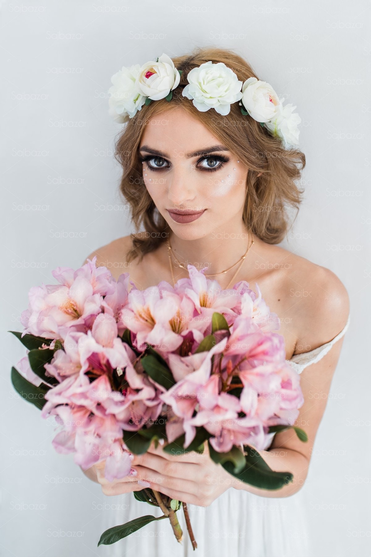 Венок для волос цветы бохо пионы пион крем