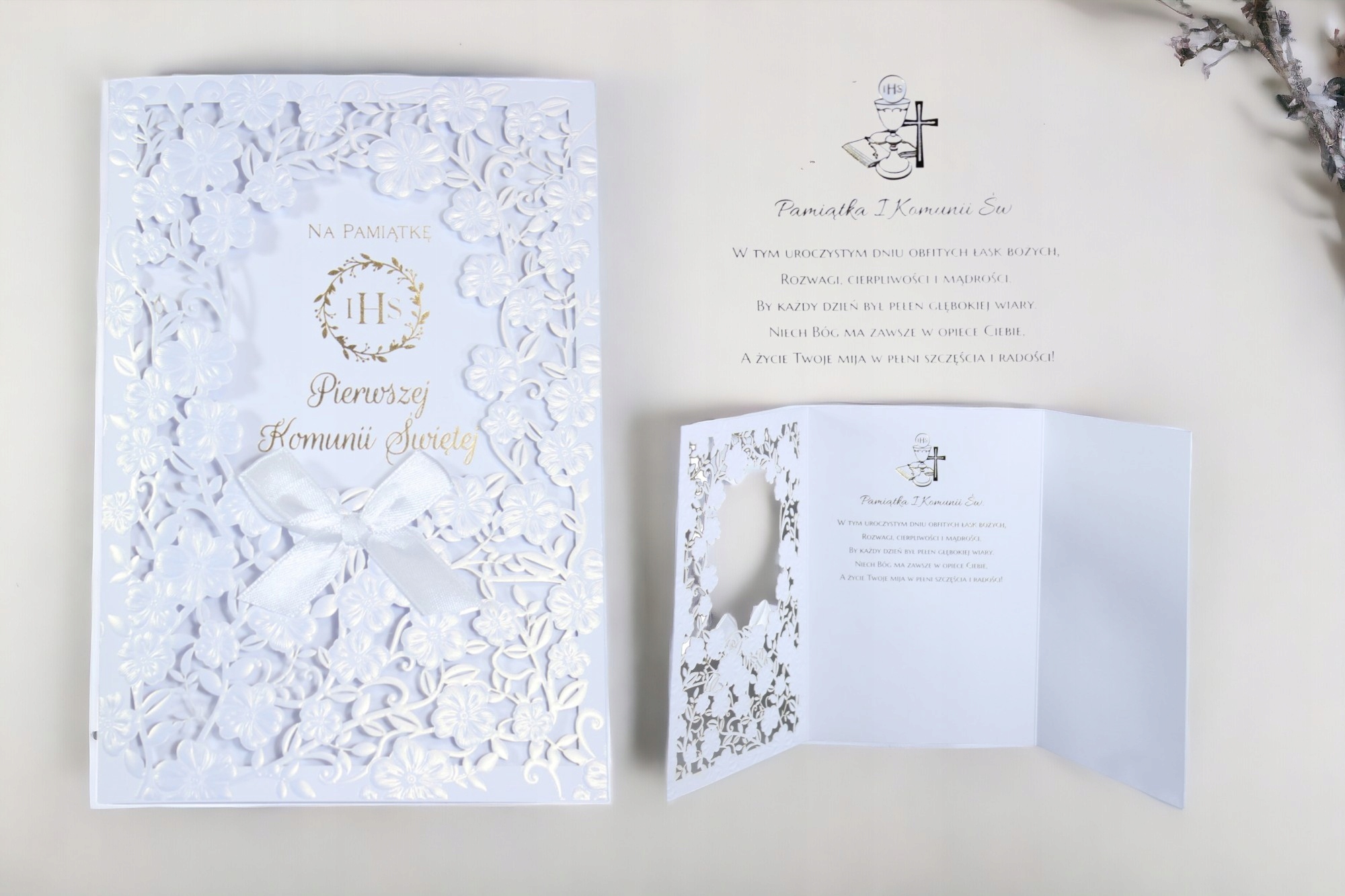 Эта элегантная карта была создана с большой заботой и заботой о самых маленьких деталях. Это не только уникальный дар, но и ценный сувенир важного духовного события в жизни ребенка.
