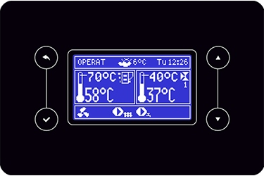 Pellar предлагает много вариантов управления, которые могут быть адаптированы к индивидуальным потребностям. Стандартный Ecomax 920p Controller может быть расширен с помощью сенсорного контроллера, а также термостатом проводной или беспроводной комнаты. Кроме того, котел может быть подключен к Интернету, используя модуль, который позволяет удалить мониторинг и управление устройством из любой точки мира.