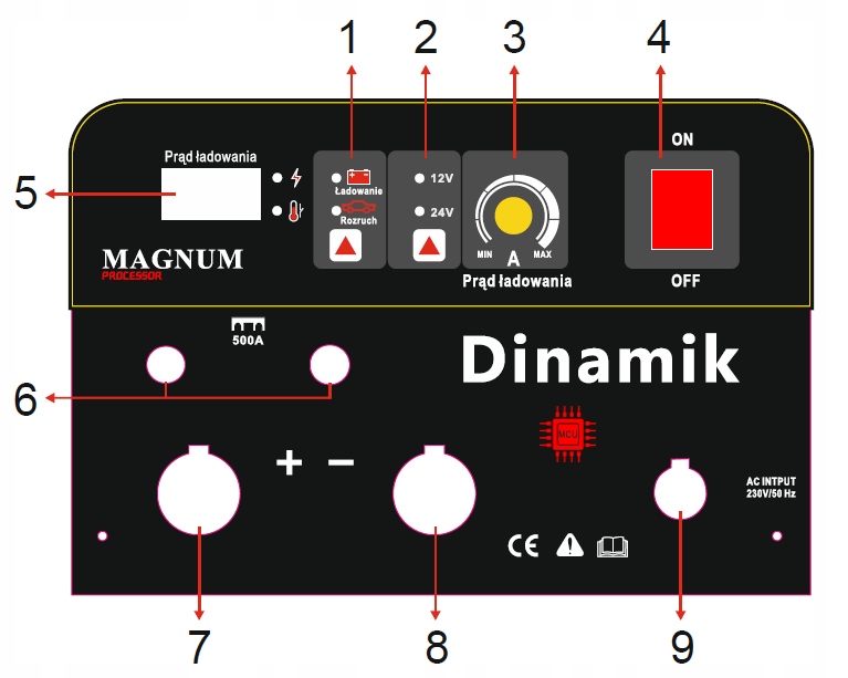 Magnum Dinamik 640 — инверторное, прочное устройство для поддержки запуска и зарядки аккумуляторов автомобилей и машин с бензиновыми и дизельными двигателями внутреннего сгорания.