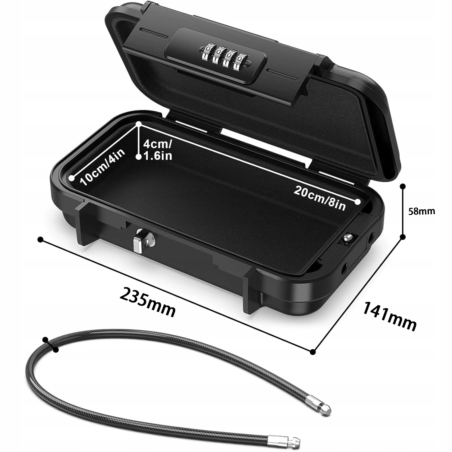 - Внутренний размер: 20 см * 10 см * 4 см (длина * ширина * высота) Идеально для хранения наличных, кредитных карт, паспортов, часов, ювелирных изделий, мобильных телефонов, USB -кабелей, ключей, автомобильных ключей и других предметов.