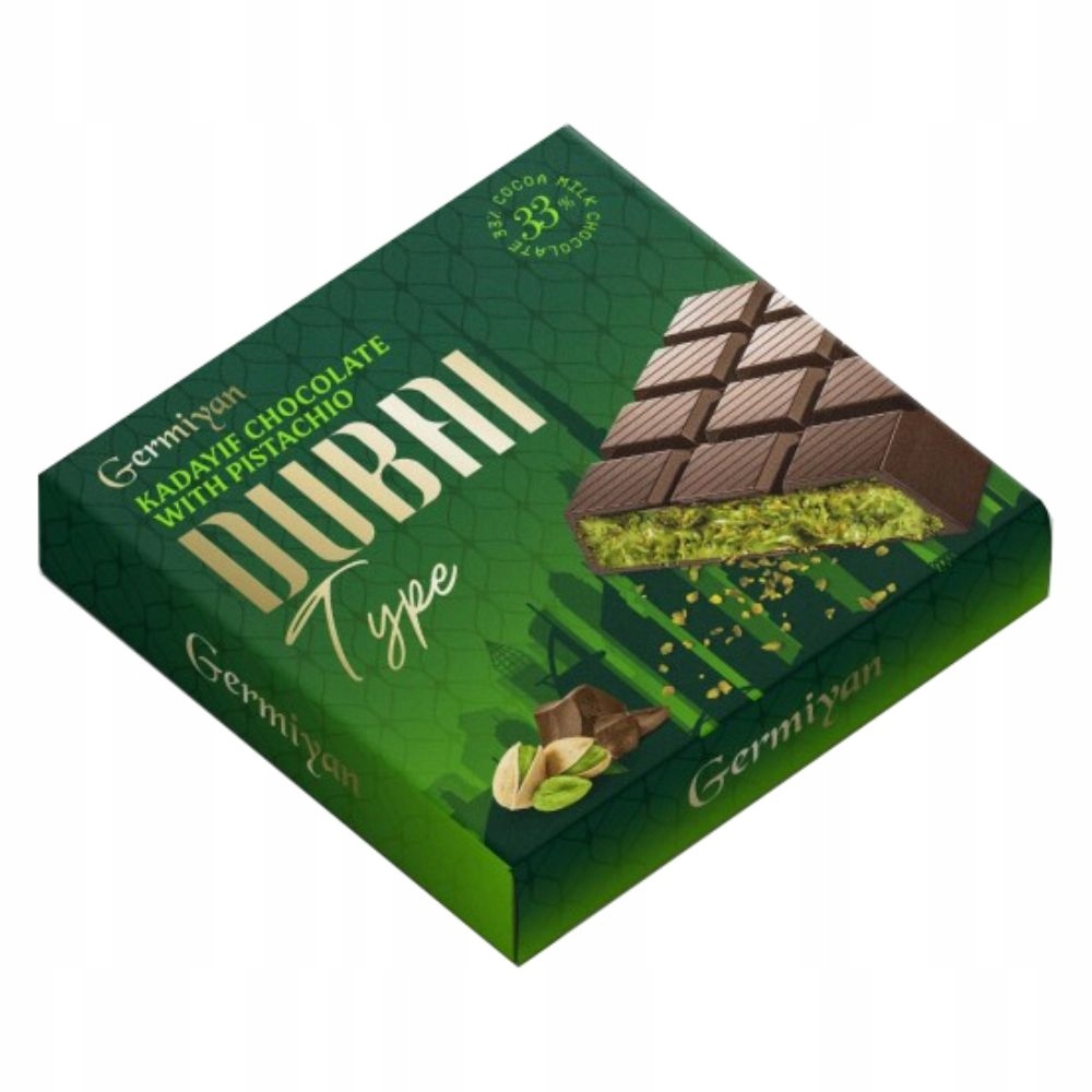 Гермиян Дубай Тип - это эксклюзивный молочный шоколад с фисташками, который ведет вас в восточное путешествие вкусов. Заполненный богатым фисташком, хрустящим пирогом Kadayif и кунжутной пастой, сочетает в себе традиционные ближневосточные ароматы с нежной сладостью шоколада. Идеально как подарок или роскошная закуска для особых случаев