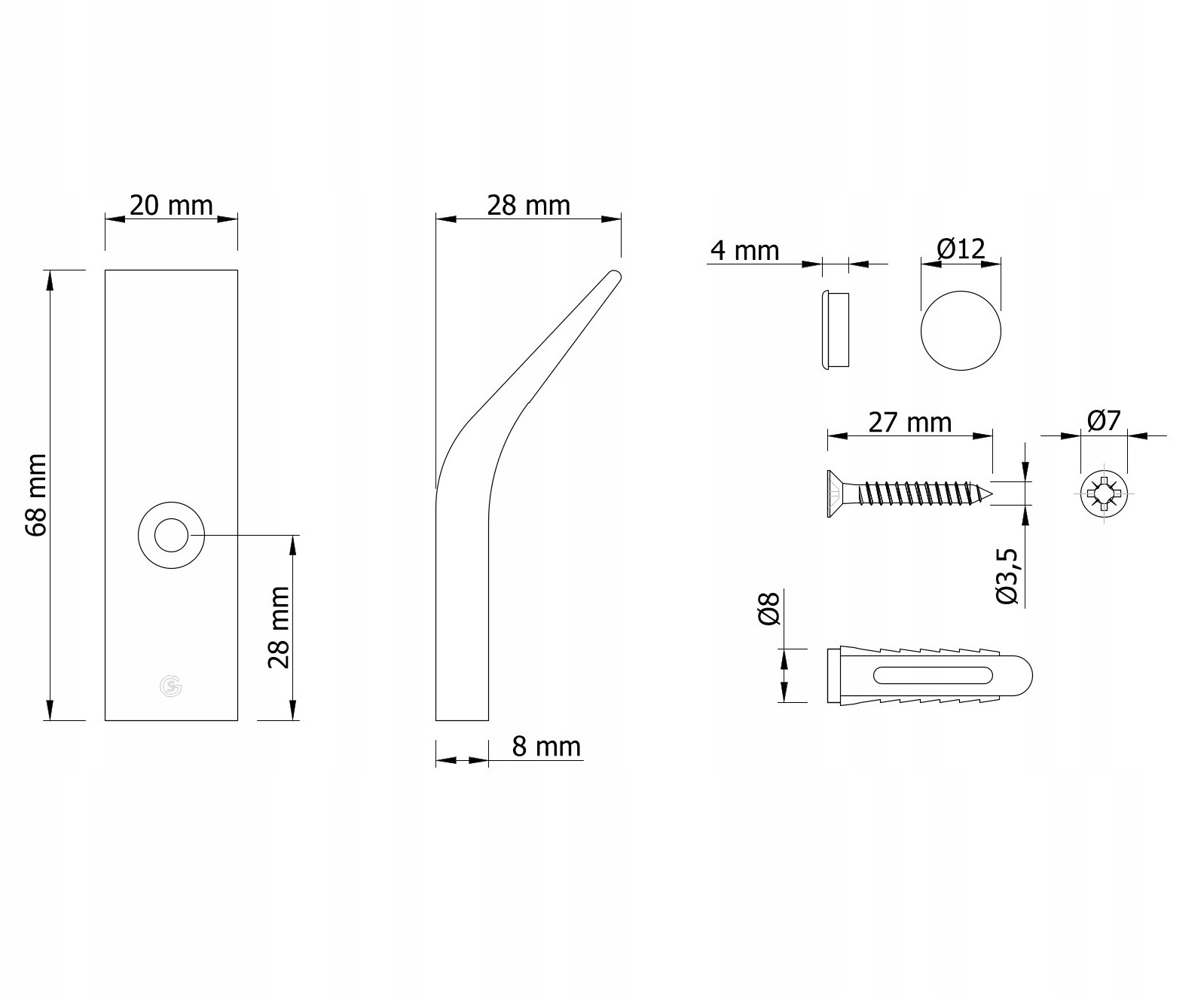 - В комплект входит шуруп, дюбель и маскирующая заглушка для крепления крючков на стену.