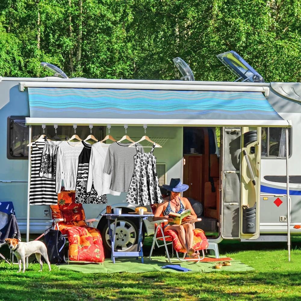 💪💪 Простота использования: ручка Светильник для кемпингового тента может автоматически перемещаться в каналы навеса от солнца на автодоме, и вы также можете повесить что-нибудь прямо на крючки. Легко собрать и разобрать, это не занимает много времени.