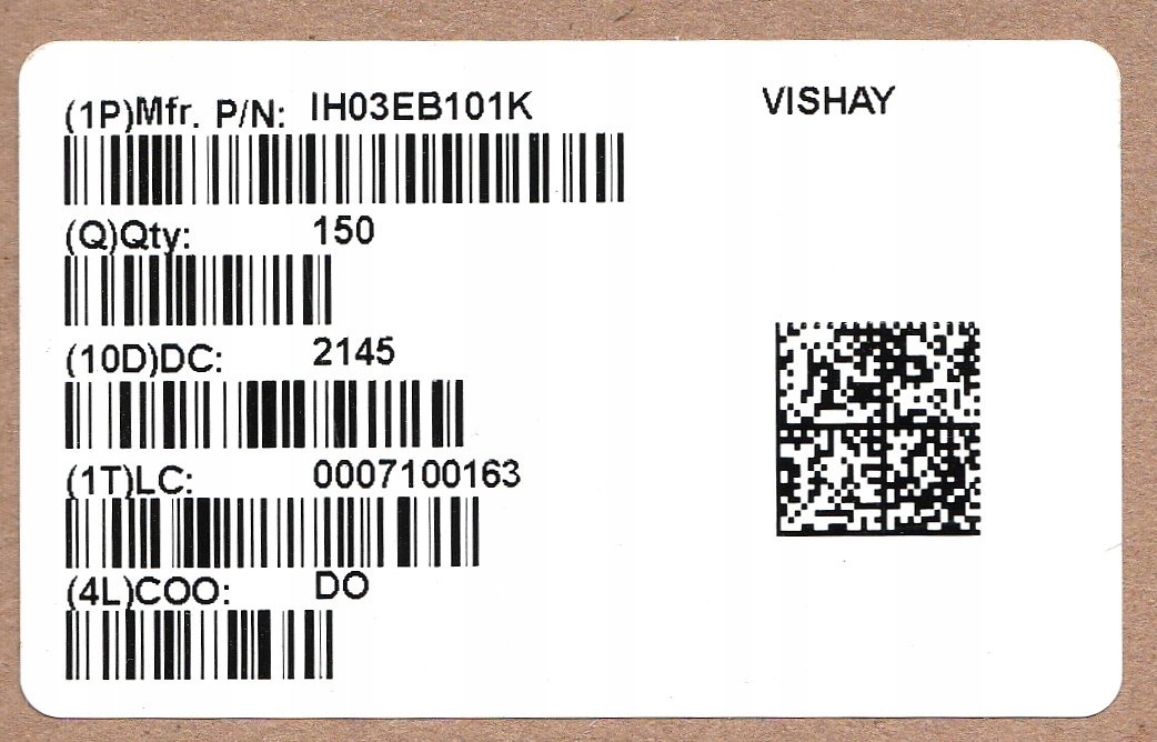 VISHAY IH03EB101K РАДІАЛЬНА КОТУШКА ФІКСИРОВАНОГО ЗНАЧЕННЯ