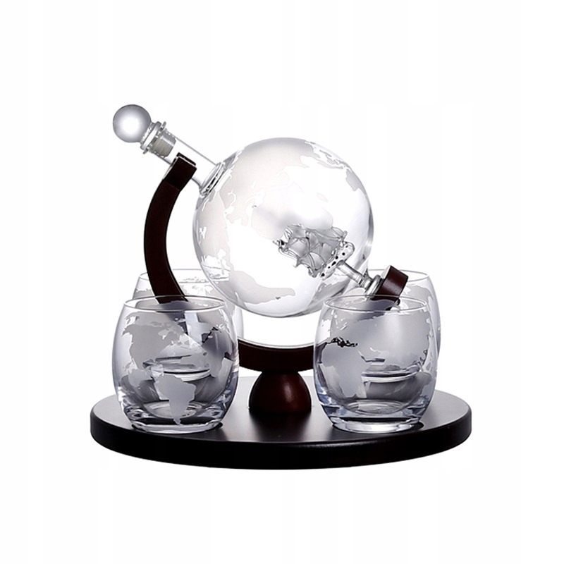 - Whiskey Globe with a ship in the middle and an engraved world map with a capacity of 850 ml