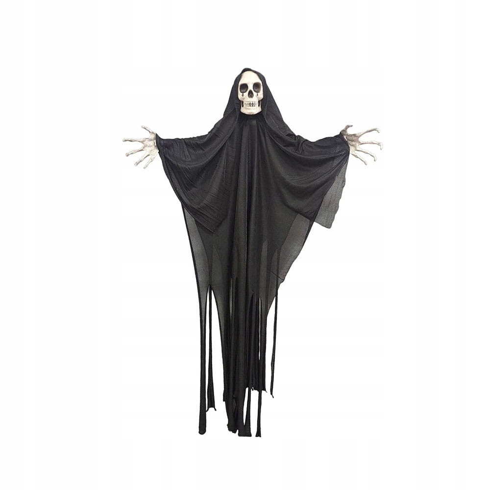 Призрачный скелет в черной разорванной одежде - идеальное украшение для Хэллоуина! Реалистичный череп, скелетные руки и воздушный материал создают впечатление, что призрак поднимается в воздухе и распространяет руки на своих жертв.