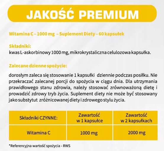 Состав: Витамин C (L-аскорбиновая кислота) 1000 мг (1250%*RWS)