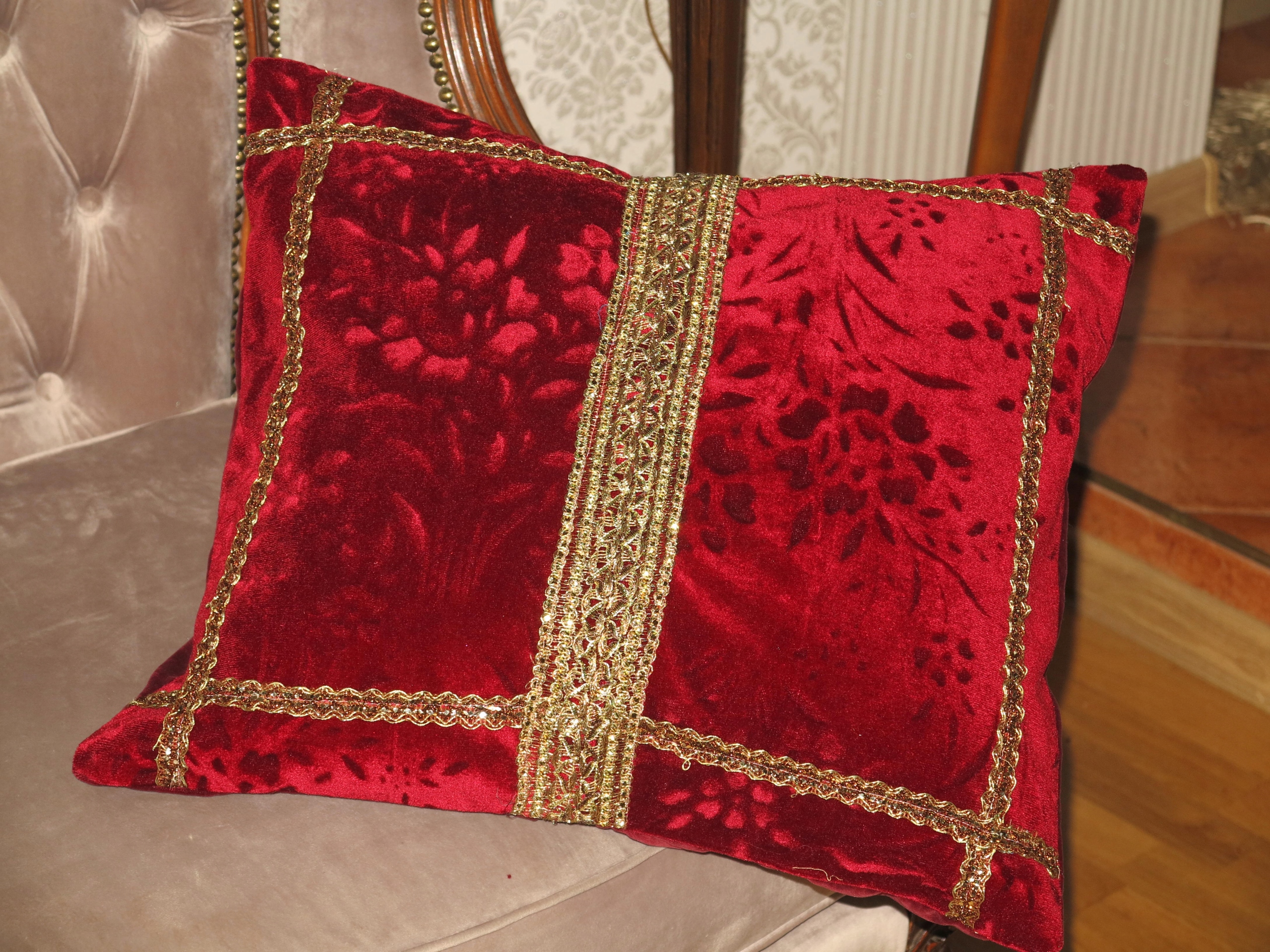 Тема аукциона очень красивая стильная Бархатная подушка с металлированной габеровой газовой, в старом золоте, с начинкой. Используется в супер хорошем состоянии и качеством, выглядит очень изысканным. Я рекомендую