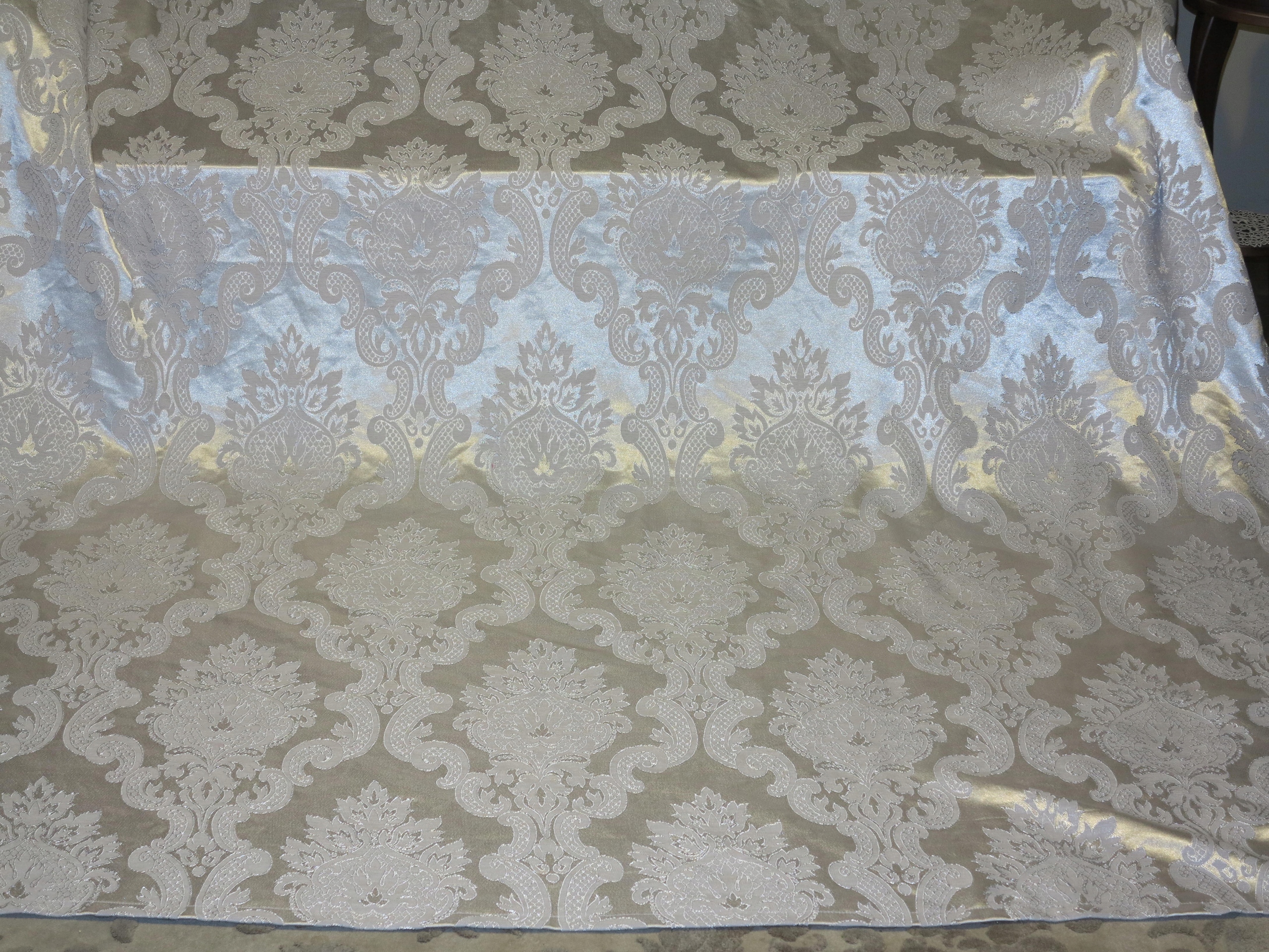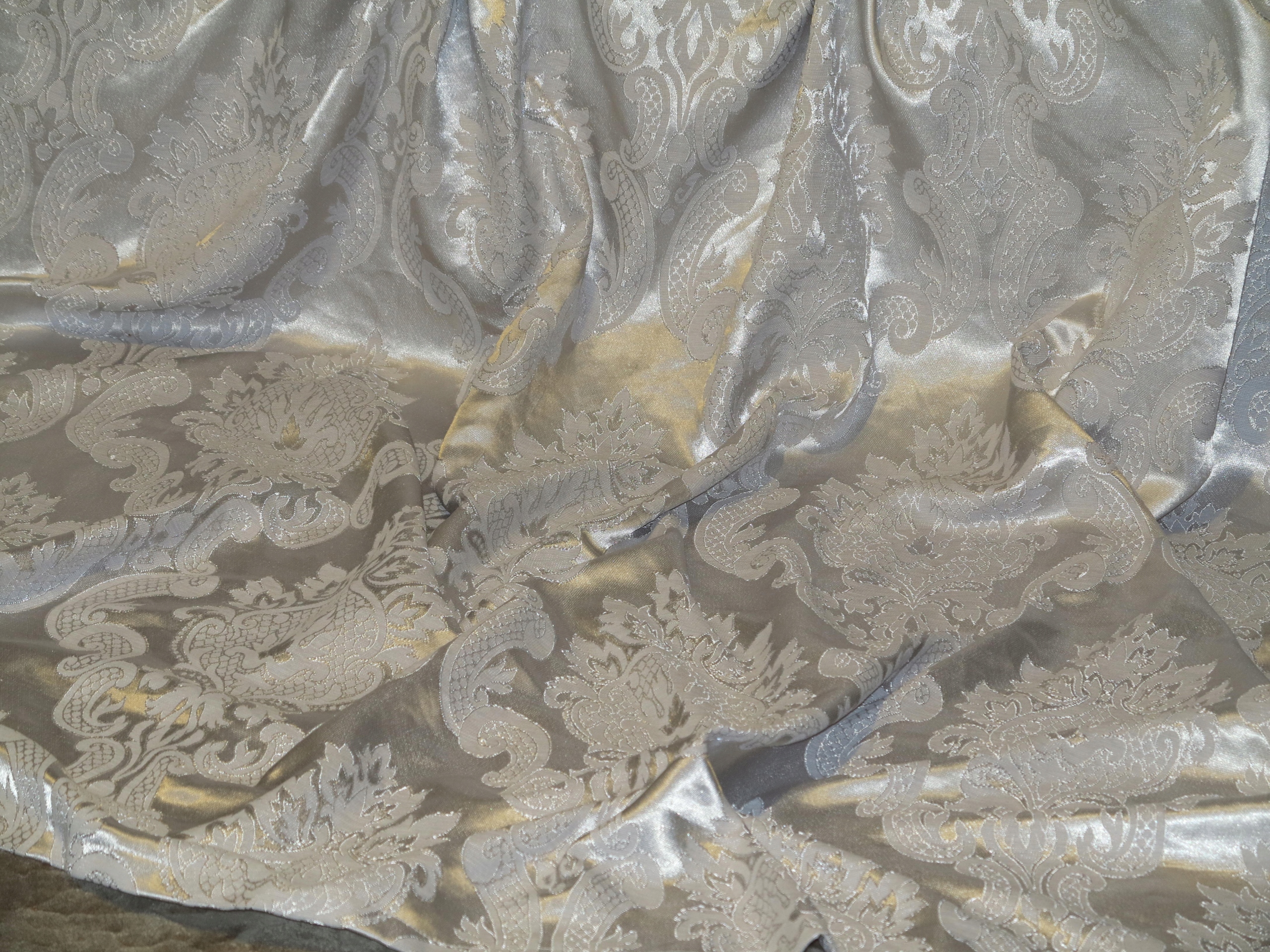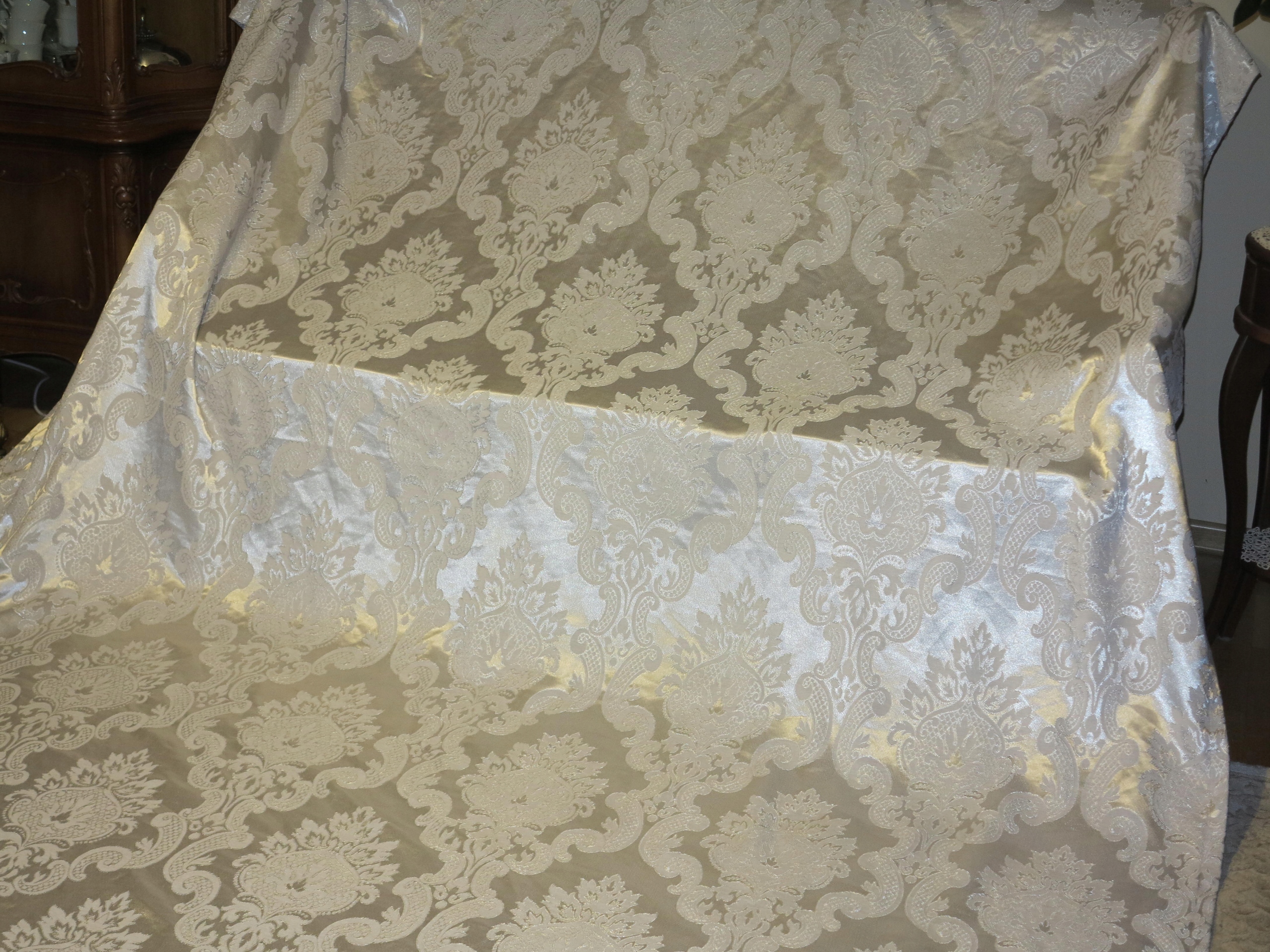 Тема аукциона - это Чрезвычайно красиво серебряный покрывал или огромная скатерть, в стильном узоре. Он имеет размеры: 264/233 см. Используется, в супер хорошем состоянии и качество. Я рекомендую, отличное украшение стильного интерьера