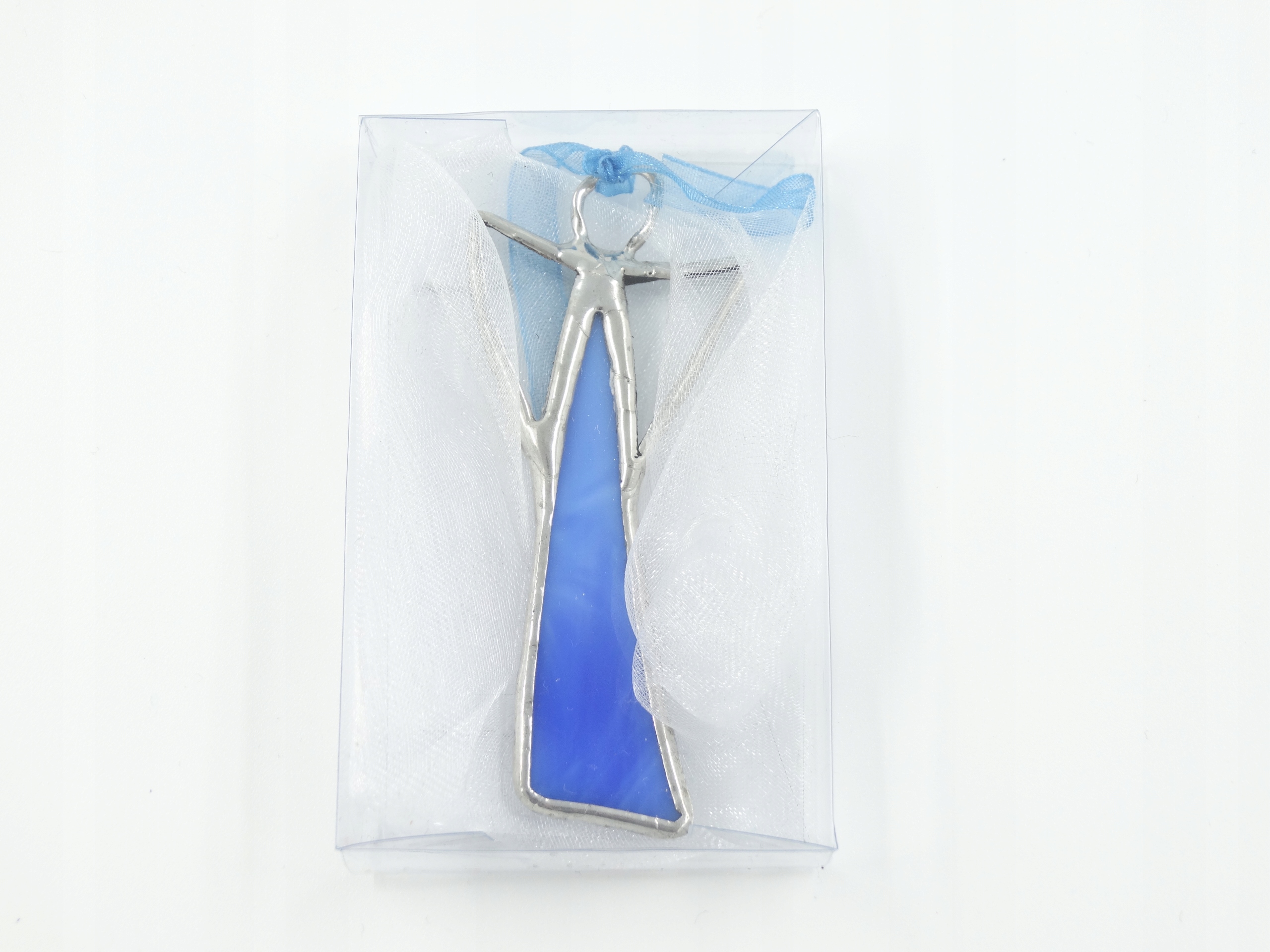 Ангел был изготовлен в технике высококачественного спектра Tiffany's Technique of Tiffany Spectrum. Каждый фрагмент стекла имеет уникальные оттенки и текстуры. Ангел обернут в ручную прозрачную картонную коробку и белую органзу.