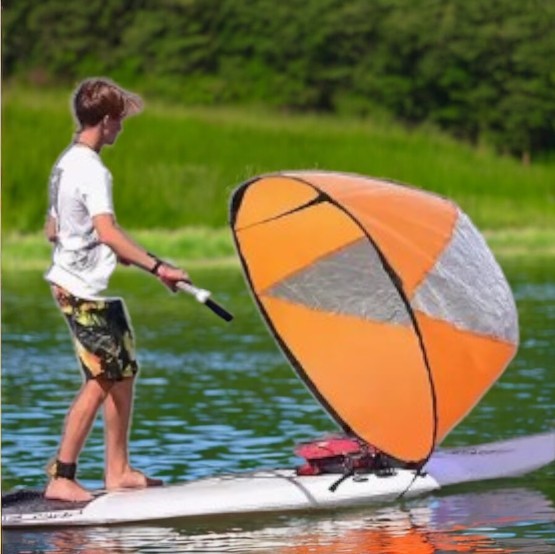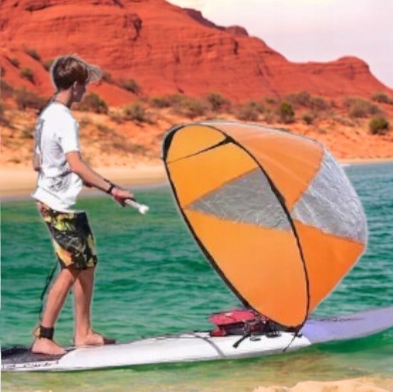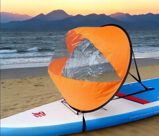 Большой парус для SUP, каяк или понтон с диаметром 108 см. Парус легкий, сложен и прост в использовании с контрольными полосами, чтобы увеличить скорость. хранится, когда он не используется