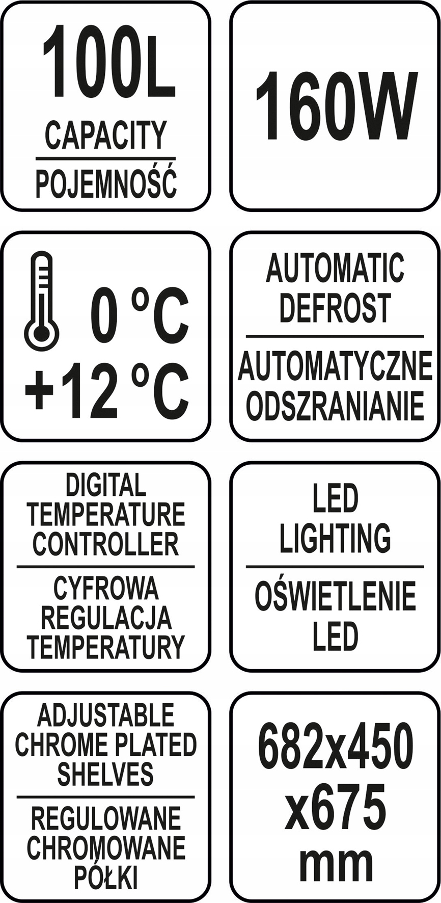 Сайт работает в диапазоне температур 0~+12°C с использованием хладагента R600a. Однако применяемая технология статического охлаждения с верхним паровым соплом и функцией автоматического размораживания обеспечивает очень эффективную работу и в то же время экономит энергию. Управление приставкой осуществляется с помощью электронного контроллера с индикатором температуры.