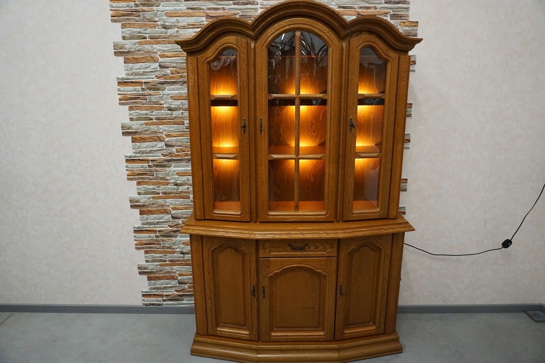 ВИТРИНА С ДУБОВЫМ КОМОДОМ С ПОДСВЕТКОЙ