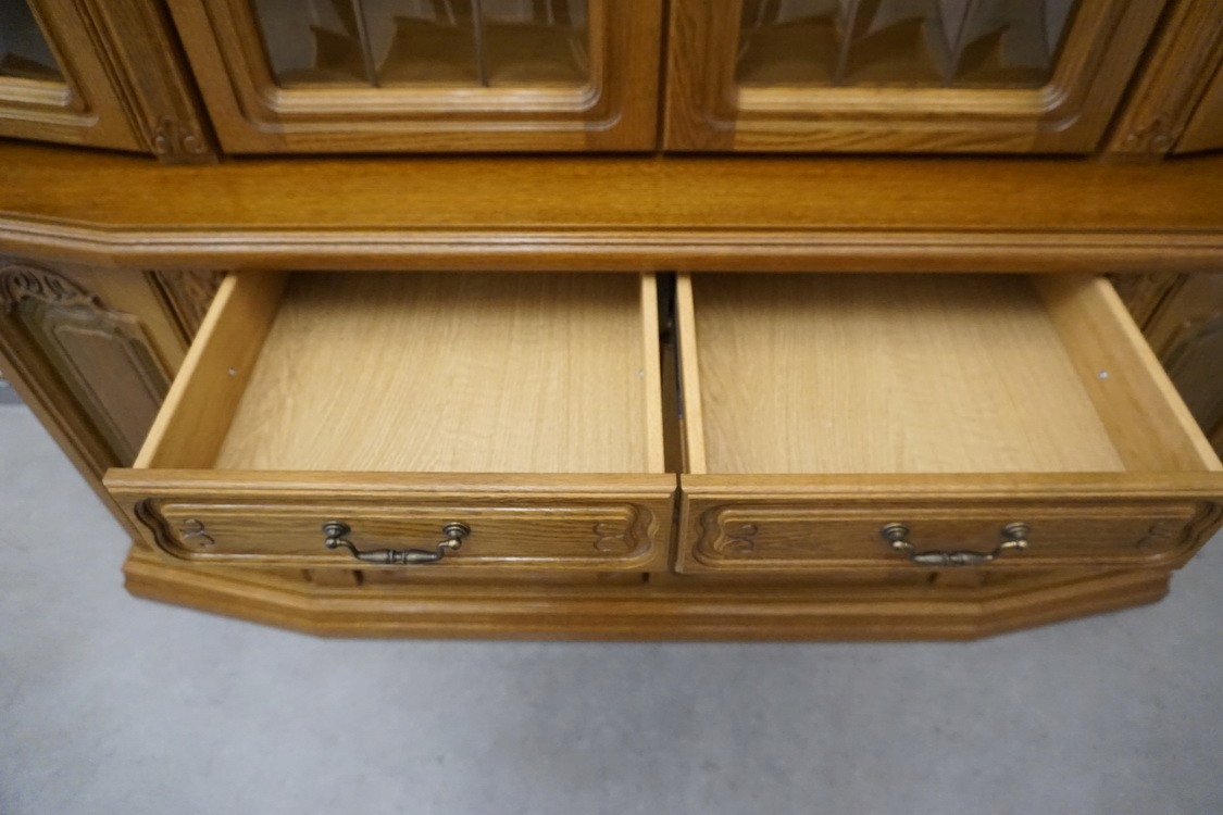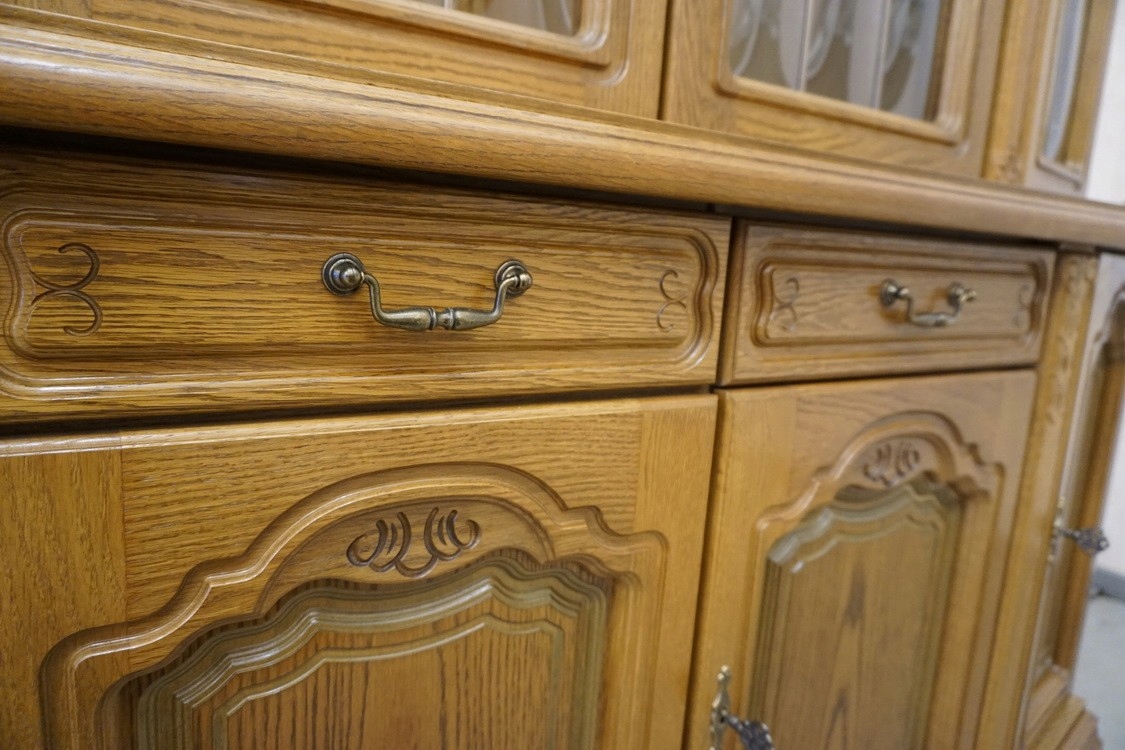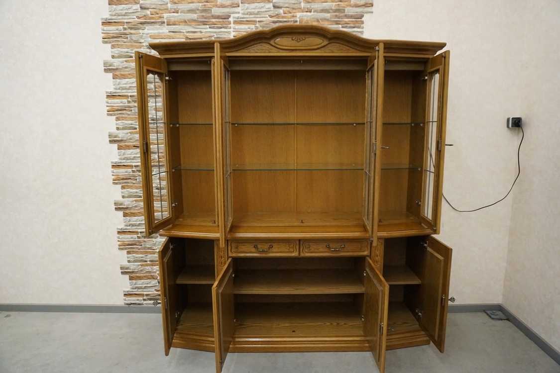 ВИТРИНА С ДУБОВЫМ КОМОДОМ С ПОДСВЕТКОЙ