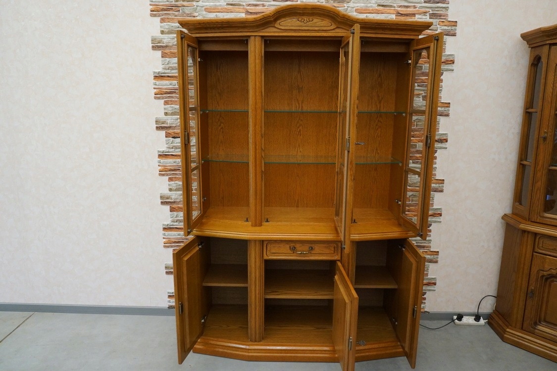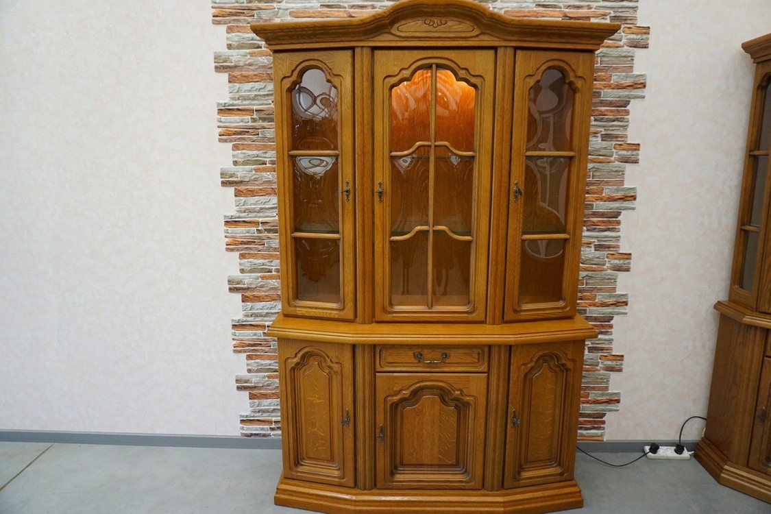 Витрина с дубовым комодом, с подсветкой