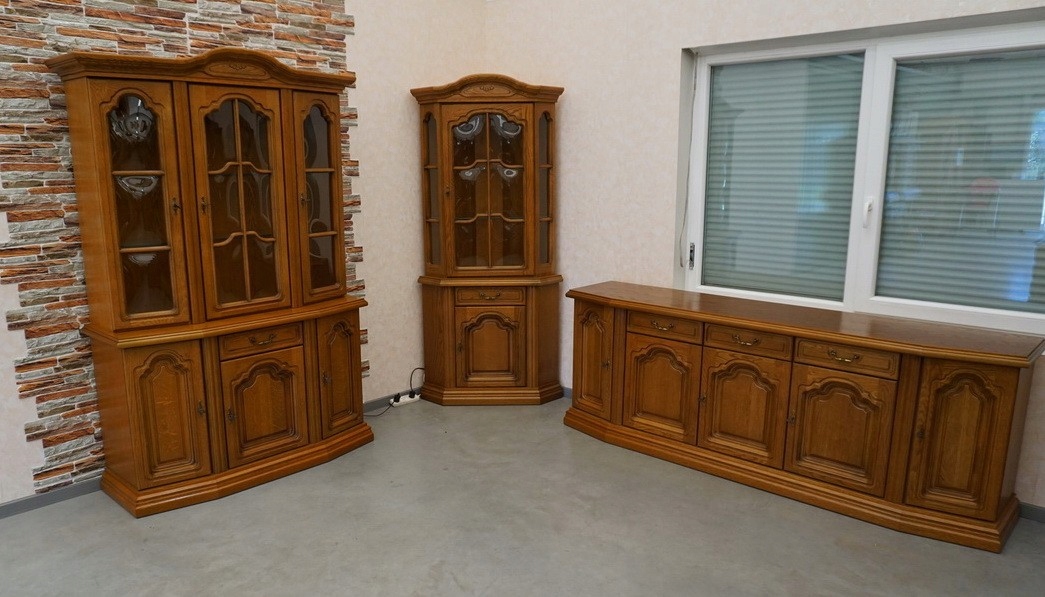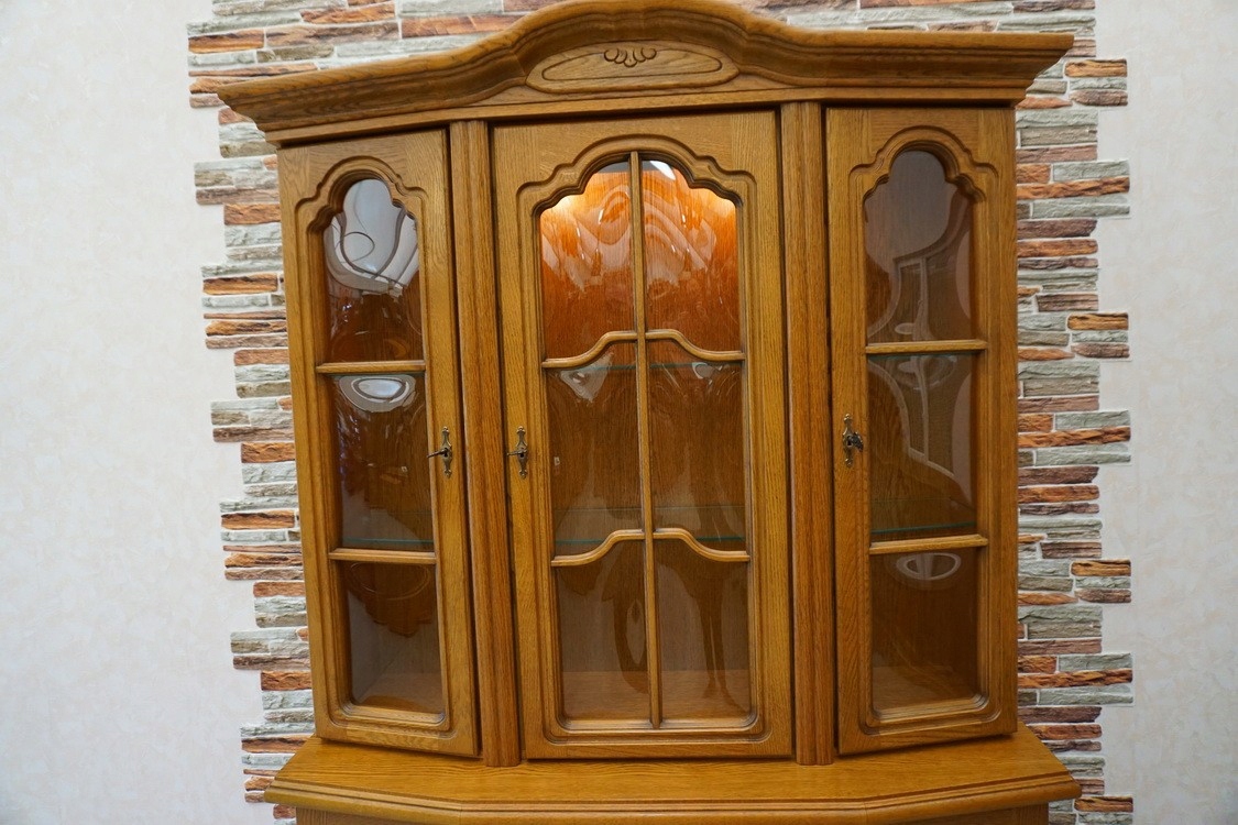 ВИТРИНА С ДУБОВЫМ КОМОДОМ С ПОДСВЕТКОЙ