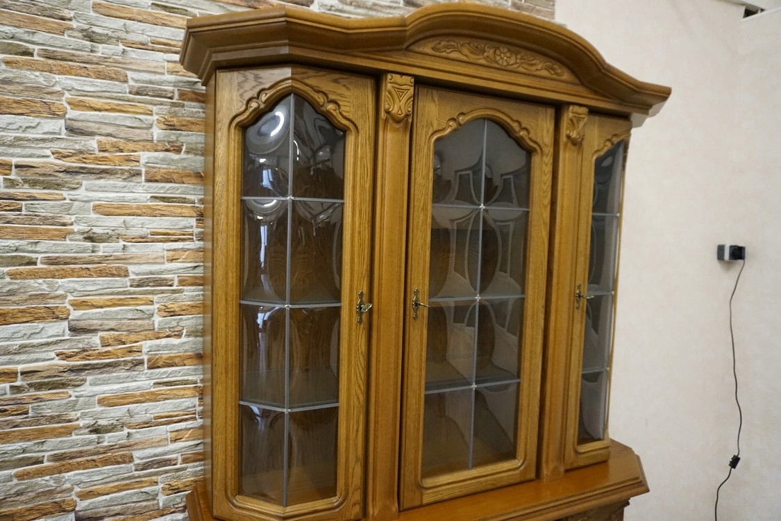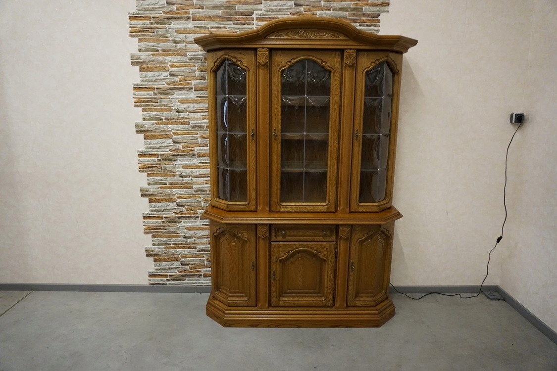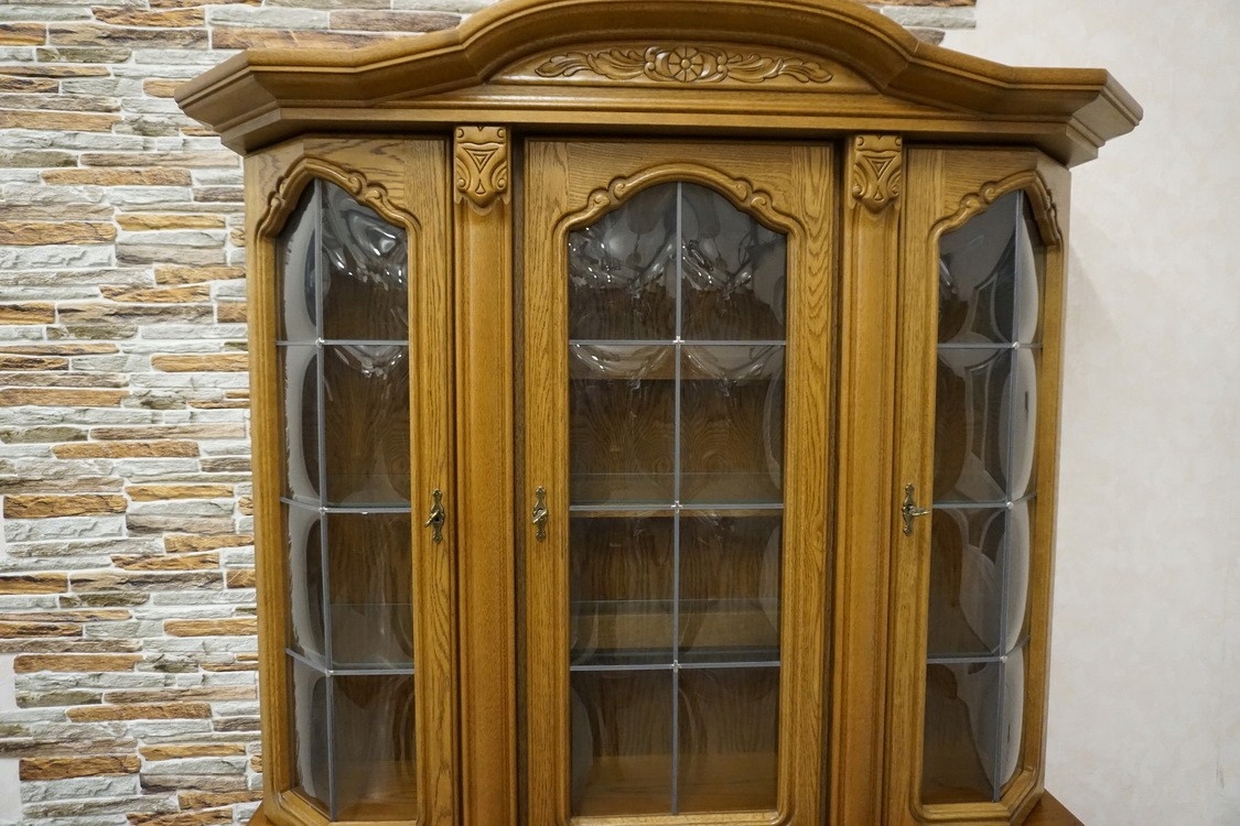 ВИТРИНА С ДУБОВЫМ КОМОДОМ С ПОДСВЕТКОЙ