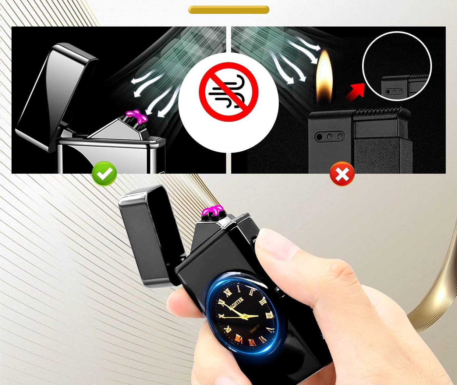- Плазменная зажигалка USB создает двойную дугу света, беспламенную и ветронепроницаемую.