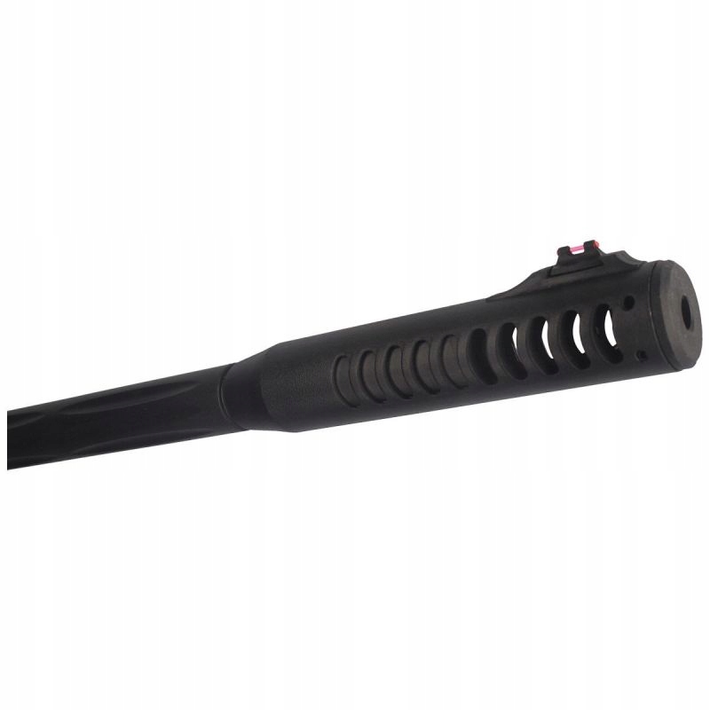 Полимерная винтовка имеет профилированную пистолетную рукоятку, повышающую комфорт и контроль над винтовкой. Приклад тактического типа оснащен приподнятой щекой симметричной формы, что обеспечивает комфортную стрельбу как правшам, так и левшам. На передней части приклада и рукоятки имеются продольные канавки, отвечающие за улучшение хвата и современный дизайн пневматического пистолета. Вентилируемая резиновая ножка в значительной степени поглощает энергию удара и создает устойчивую точку опоры.