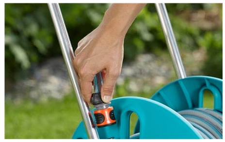 Противокапельная система предотвращает утечку воды после окончания работы или при перемотке шланговой тележки.