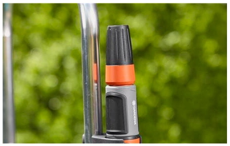 После использования и транспортировки насадку для шланга или аксессуары для орошения можно повесить на практичный зажим в верхней части рамы.