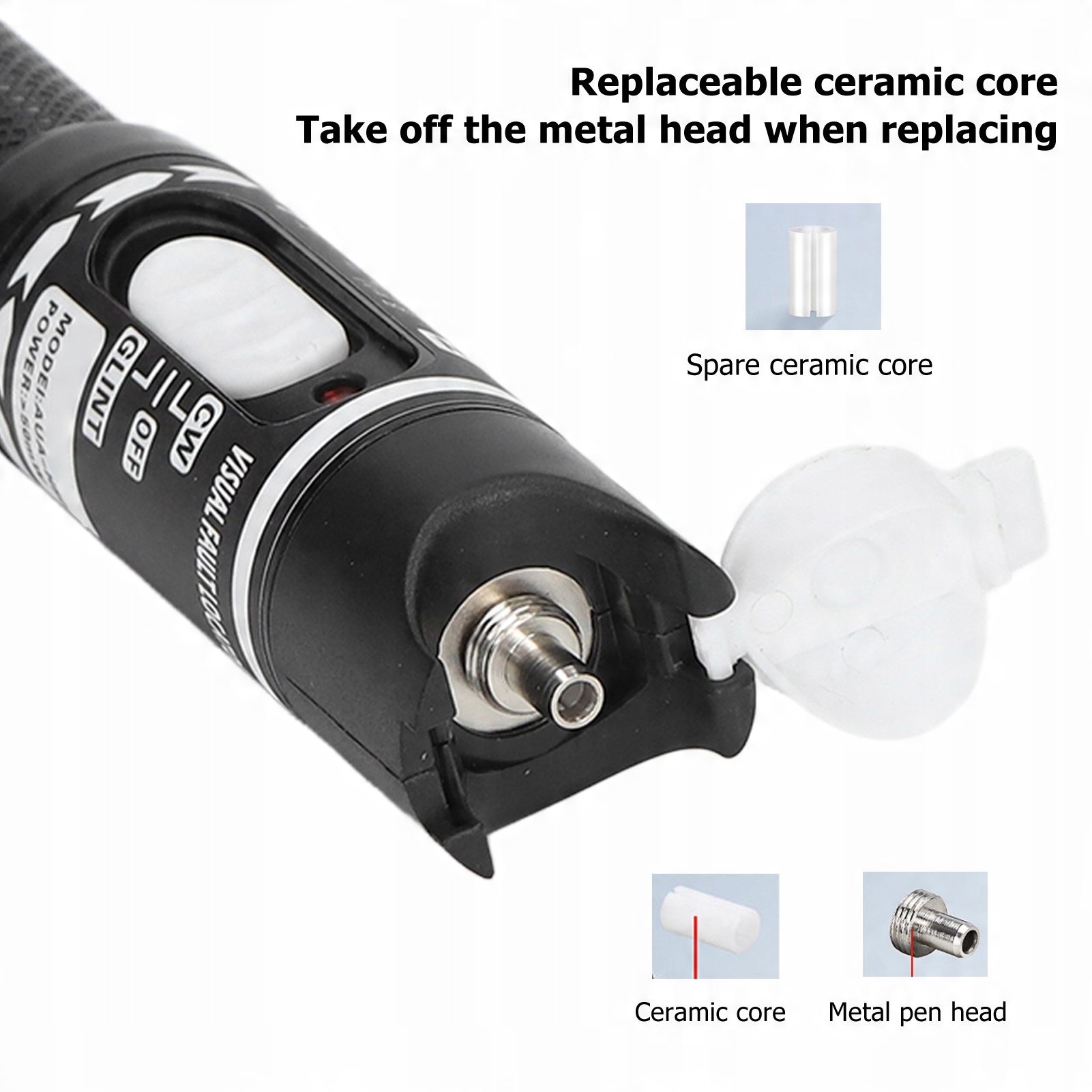 3. РУЧКА ДЛЯ ЧИСТКИ ВОЛОКОН: оснащена ручкой для чистки торцевой поверхности оптического волокна, которая может очищать более 800 раз, обладает сильной очищающей способностью, применима к LC или MU диаметром 1,25 мм.