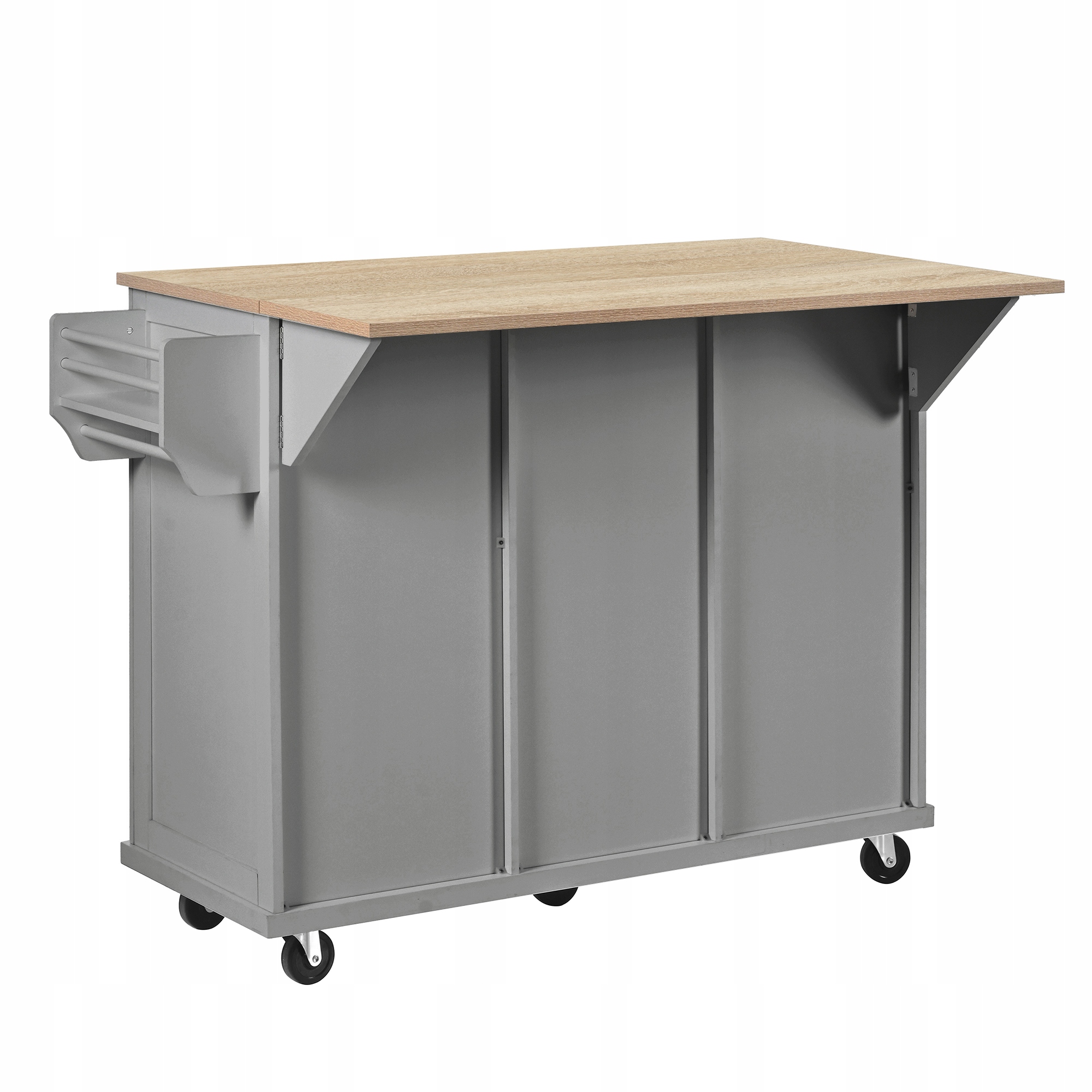 Кухонный остров на колесах, склад -кухонный остров с столовой, мусорная корзина и ящики, мобильный кухонный остров, идеально подходящий для кухни и столовой (черный) серый