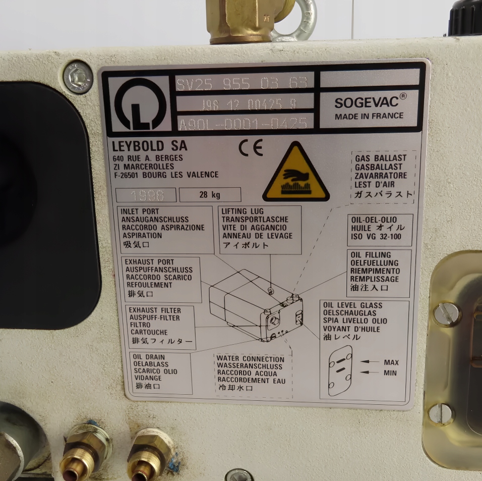 Подержанный масляный вакуумный насос Sogevac SV25 A90L-0001-0425 с двигателем