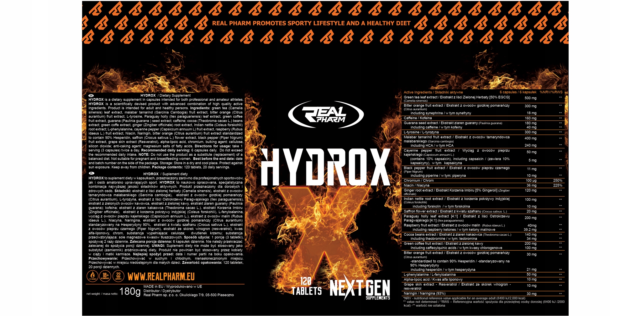 Real Pharm Hydrox b> имеет до 22 активных ингредиентов, которые влияют на процесс сжигания жира. Все они идеально дополняют друг друга и, помимо сжигания жира, поддерживают организм и общее состояние. Первый - экстракт зеленого чая. Он очищает тело, а антиоксиданты, содержащиеся в нем, удаляют свободные радикалы. Экстракт горького апельсина обладает термогенными свойствами, которые значительно влияют на сжигание жира. Другими активными ингредиентами являются экстракт гуараны и кофеина. Они стимулируют действия, ограничивают аппетит и ускоряют метаболизм - это очень желательные эффекты при сжигании жира. В дополнение к вышеупомянутым свойствам, L-тирозин оказывает положительное влияние на мышцы и позволяет более длительно тренировки и регенерации после него. Камбоджия, содержащаяся в приложениях Garcinia, представляет собой фруктовый экстракт Малабарски. Он обладает значимыми термогенными свойствами, которые работают особенно положительным на сжигание жира от живота. Кроме того, он уменьшает аппетит и обычно поддерживает тело. Капсаицин, содержащийся в этом веществе, имеет два основных действиях по похудениям. Первый - ускорить метаболизм, а второй - увеличить тепло. В дополнение к этим свойствам, он блокирует аппетит, особенно в соль, сладких и жирных вещах. В свою очередь, малиновый экстракт имеет более сложный эффект. Это снижает уровень триглицеридов, что позволяет вам очень хорошо снизить вес. Дополнительным действием является предотвращение обезжиривания печени и активирует реакции термо -происхождения. Очень важным активным элементом является экстракт какао -бобов. Благодаря своим 100 отношениям, он слегка работает над многими аспектами тела. Какао увеличивает дофамин, что приводит к хорошему настроению во время тренировки, является источником кальция, магния и витаминов A и B, и поддерживает регенерацию. В Real Pharm Hydrox Эта роль играет экстракт зеленых фруктов. Этот ингредиент предотвращает его проникновение в жировые клетки и хранение. L-фенилаланин, содержащийся в добавлении, усиливает влияние потери веса, он также обеспечивает сытость. Это соединение не производится организмом, что означает, что приготовление с ним очень важно для похудения. Экстракт кожи винограда также имеет очень важную функцию в композиции. Он работает на существующих жировых клетках и заставляет их разрушаться. Это прямая поддержка похудения, которая в сочетании с термогенными - дает очень хорошие результаты. Перед последним соединением, которое присутствует в горелке, is-ala или кислотно-альфа-липона. Эта кислота является сильным антиоксидантом. Проще говоря, это вещество, которое эффективно очищает организм, а также ускоряет метаболизм. Все идеально дополняет Нарингин, который естественным образом содержится в грейпфрутах и обеспечивает иммунитет и общую скважину и энергию. Это ниацин, который поддерживает функционирование белков и жиров, индийского экстракта корня крапии, увеличивая процесс расщепления жира, экстракт цветов шафрана и экстракт корня имбиря, усиливает пищеварение, экстракт каравовных полых листьев, что приводит к абсорбции жира, фруктового экстракта черного перца и хрома. Он заботится о правильном уровне инсулина и необычного веса. Его операция очень полная. Он содержит термогенные свойства